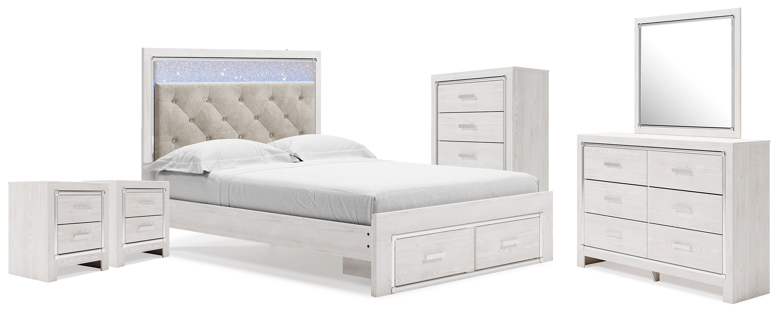 - Altyra Queen Storage Bed, Dresser Mirror, Chest and 2 Nightstands