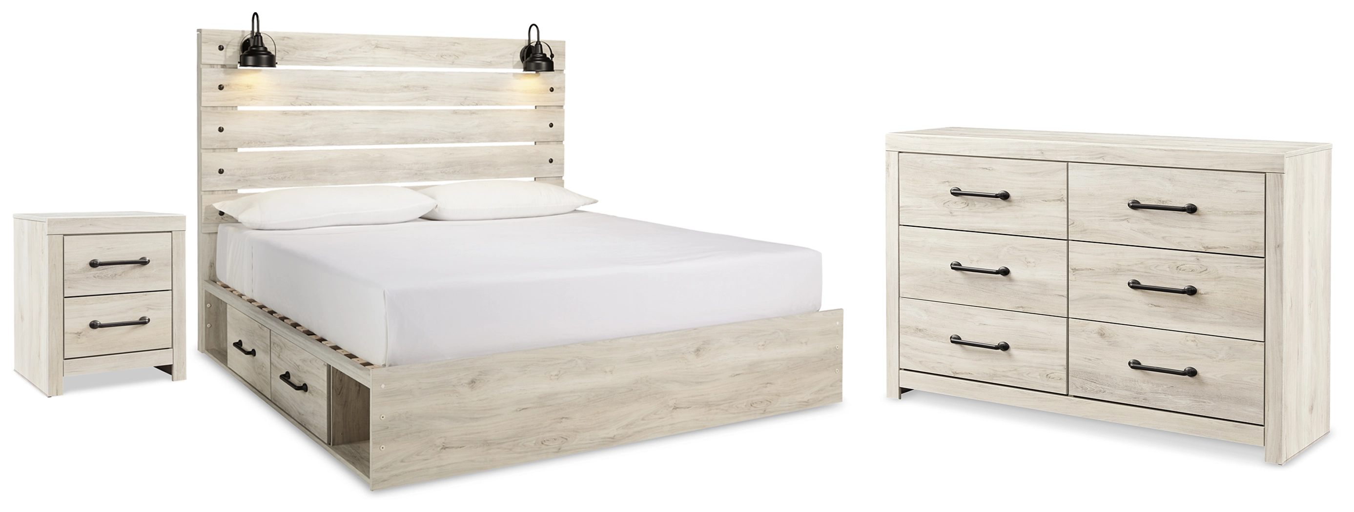 Cambeck King Panel Storage Bed. Dresser and Nightstand