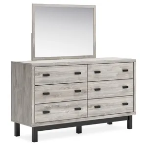 Vessalli Dresser (B1036-231): 62.01 x 19.33 x 35.63 - Craft a contemporary hideaway without breaking the bank. An elegant juxtaposition of refined neutral hues, this two-toned dresser brings sleek style to your space. Matte black drawer handles enhance the sheer simplicity of its profile. With this storage piece, a bedroom brimming with luxury has never been more attainable. Made with engineered wood (MDF/particleboard/plywood) and decorative laminate for the right balance of affordability and durability, Light gray finish over a replicated oak grain with authentic touch; base has matte black finish with subtle replicated wood grain, Decorative laminate veneer replicates natural or man-made material surfaces with consistent color, pattern and texture, Handles with matte black finish, 6 smooth-gliding drawers, Drawer interiors are lined with a faux linen laminate for a clean, finished look, Safety is a top priority, clothing storage units are designed to meet the most current standard for stability, ASTM F 2057 (ASTM International), Drawers extend out to accommodate maximum access to drawer interior while maintaining safety