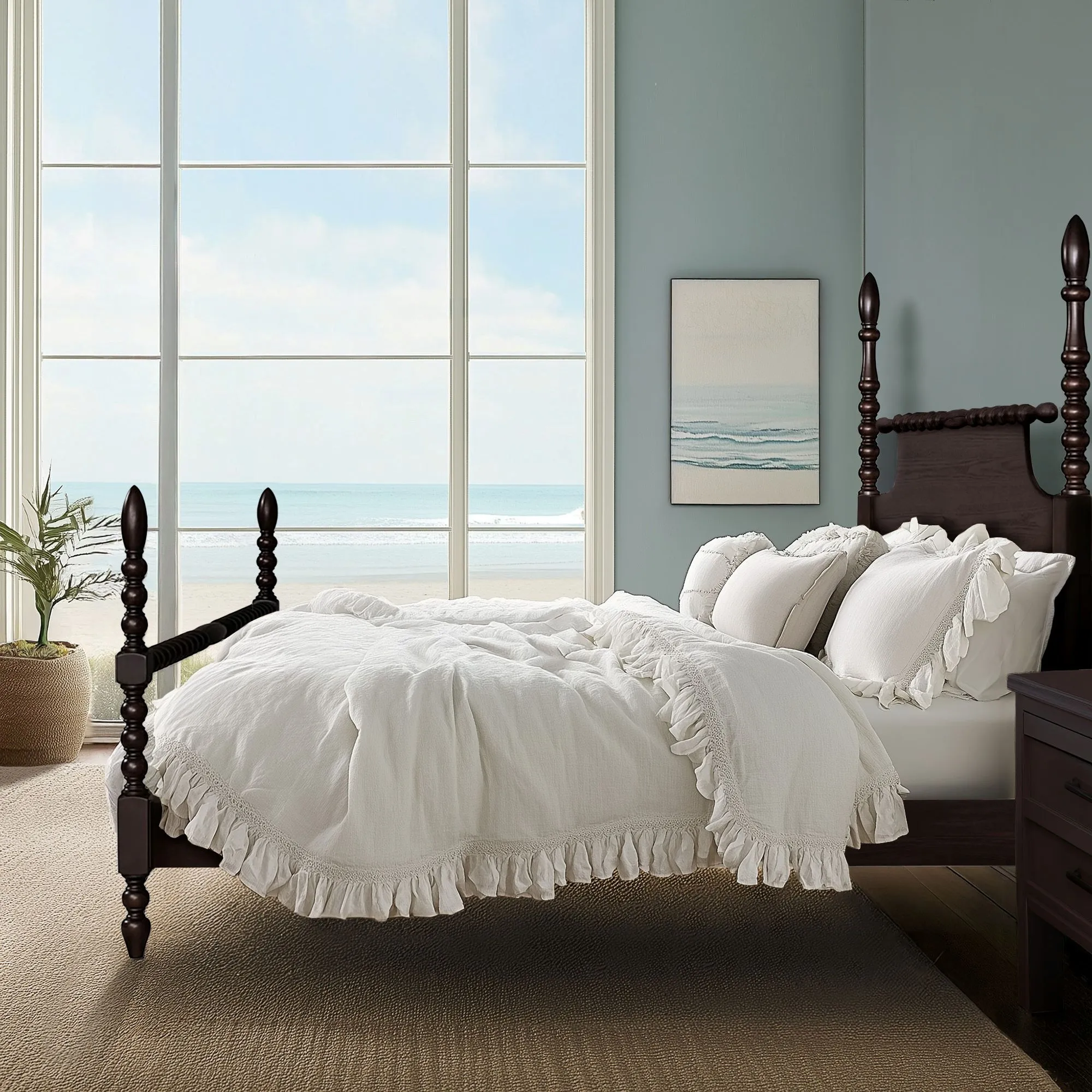 Dramatic turned post bed featuring a rolling pin style, the Madison Park Signature Beckett Bed reminds us of an earlier life when the "rolling pin" would be functional and used to make a lumpy bed into a smooth bed. The turned legs and stretchers add a classic and elegant touch, bringing out the beauty of the design. Bed will be shipped in 3 cartons. Leg assembly required and tools are included.