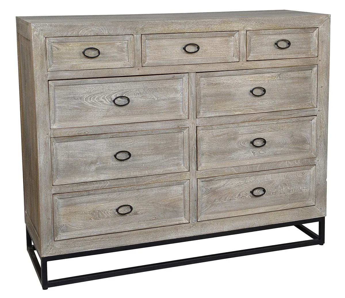 Our Artemis dresser is endlessly functional, featuring nine drawers to meet myriad storage needs. Defined by transitional form and soft, neutral coloring, Artemis easily integrates into virtually any bedroom d