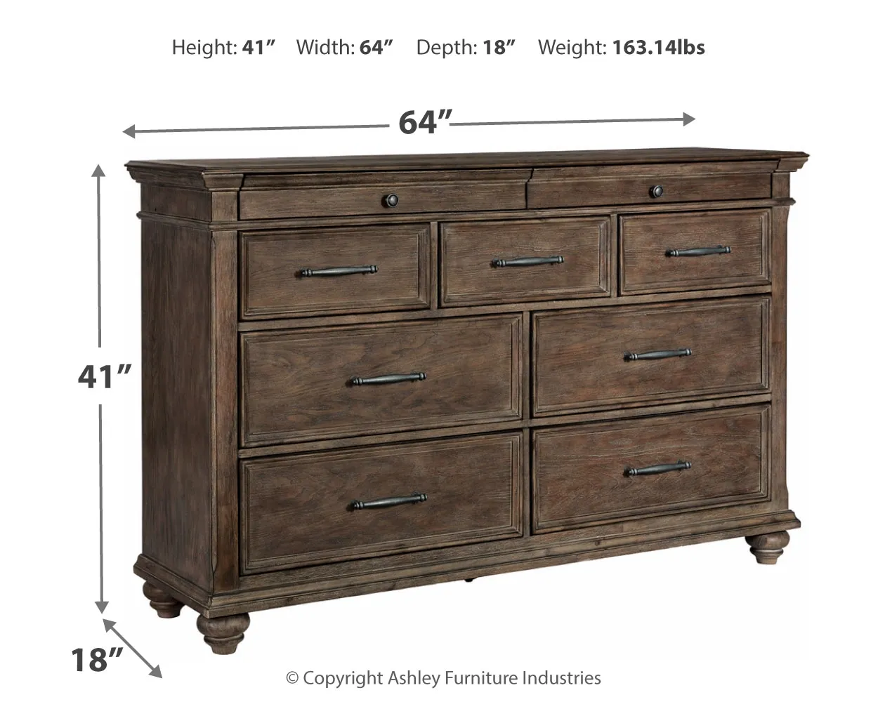 7 smooth-gliding drawers with dovetail construction (top drawers felt lined)