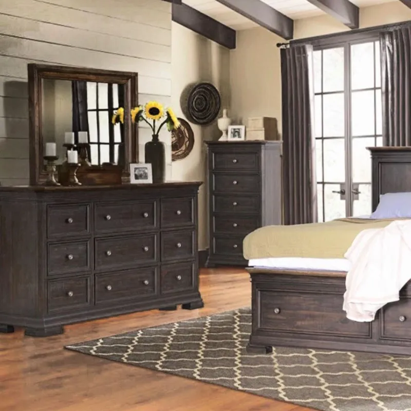 The Grand Louie bedroom collection by Napa combines the best of casual and traditional styling. This “grand” group features a lightly distressed two tone wheat and misty night finish over select hardwoods. Being casual in style and finish allows this bedroom to compliment any of today’s home interiors. Features of this bedroom include a hand applied artisan finish, full extension ball bearing drawer guides, finished drawer interiors, floor levelers and timeless styling. Our hardwoods are eco-friendly as all our woods are planted and grown in managed forests. We welcome you to create your own grand interior by welcoming Grand Louie into your home!