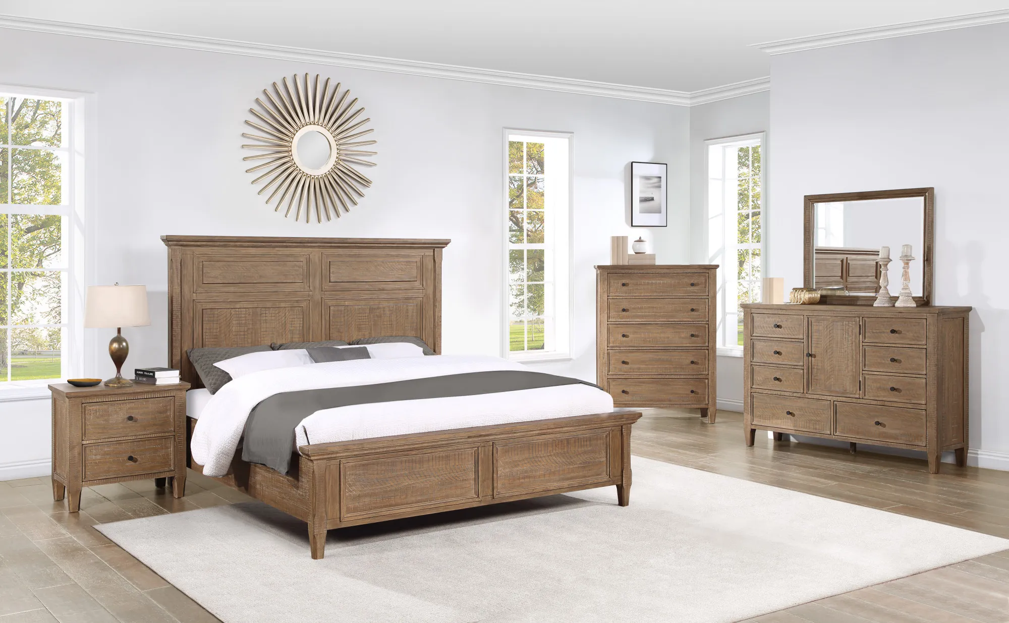 - The wood is hand-stained in a natural multi-step driftwood finish to highlight the natural grain and knots of the wood