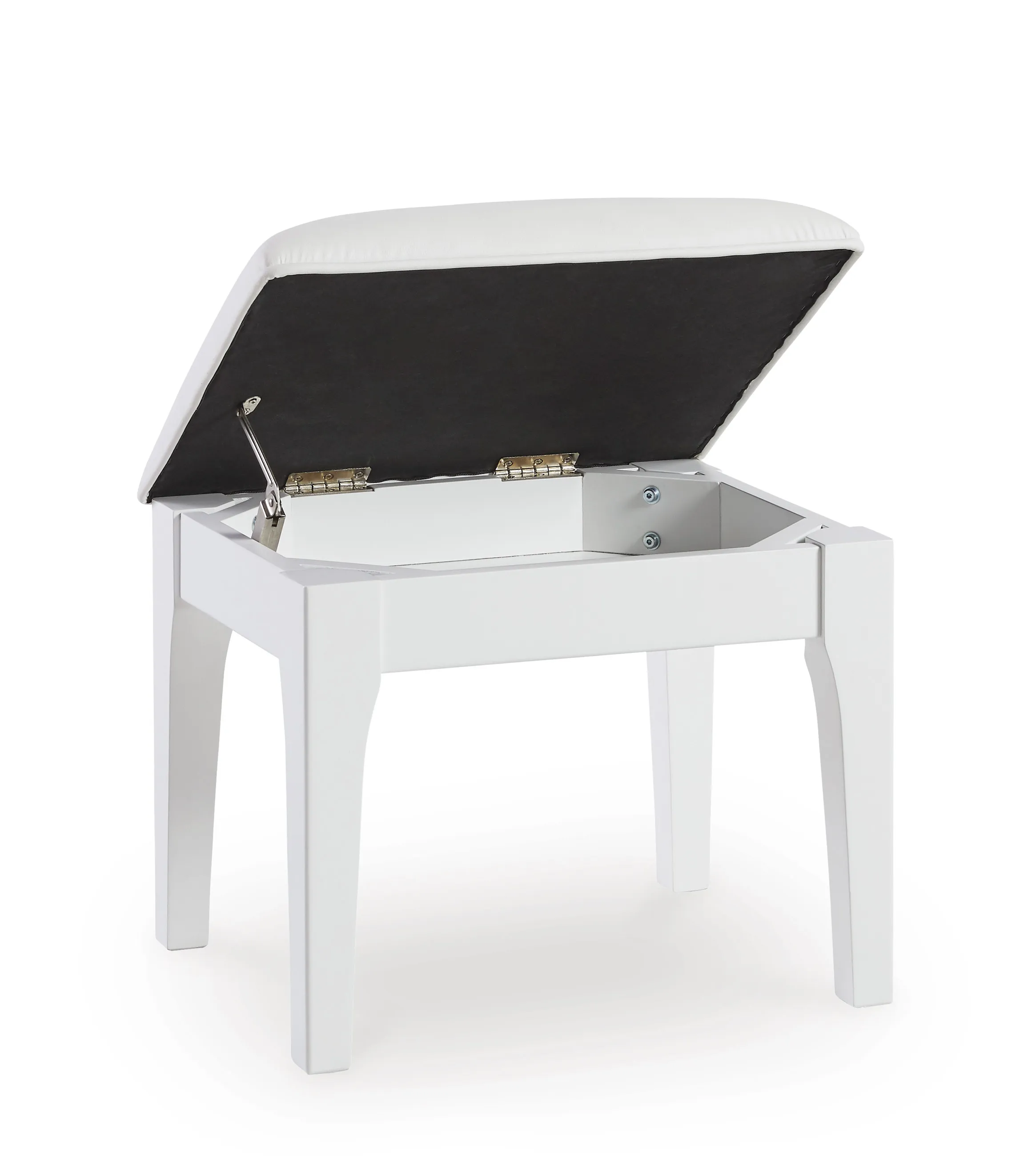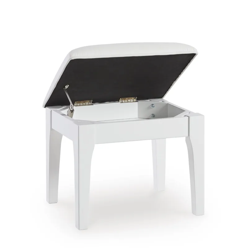 - Hinged seat reveals storage compartment