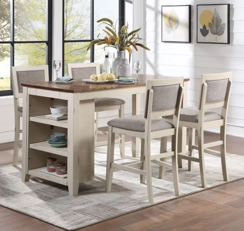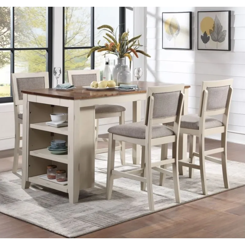 Solid hardwood in a subtle two-toned spice and white. The soft neutrals contrast beautifully with any color decor.