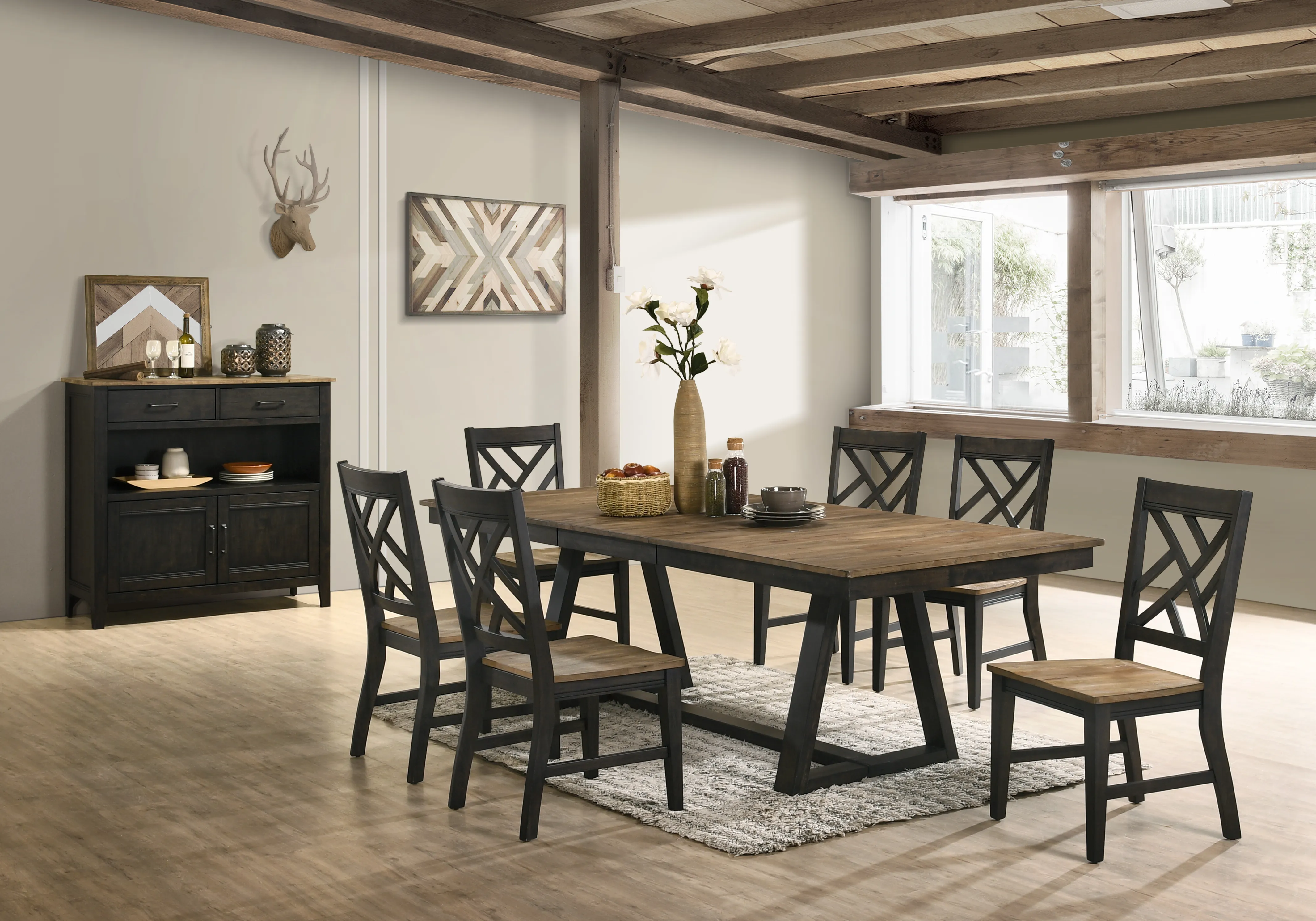 The Harper Dining group has family friendly solid wood construction. It’s Transitional style blends simple lines with a striking two tone finish. The Harper Dining group is tailored to fit in today’s modern home with dining configurations designed