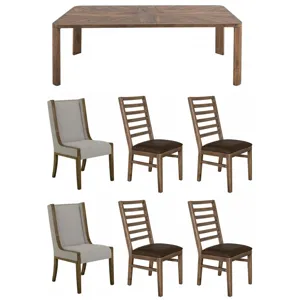 - Multi-step hand-painted water-based acrylic lacquer finish in gray and brown tones for an updated “reclaimed wood” look.