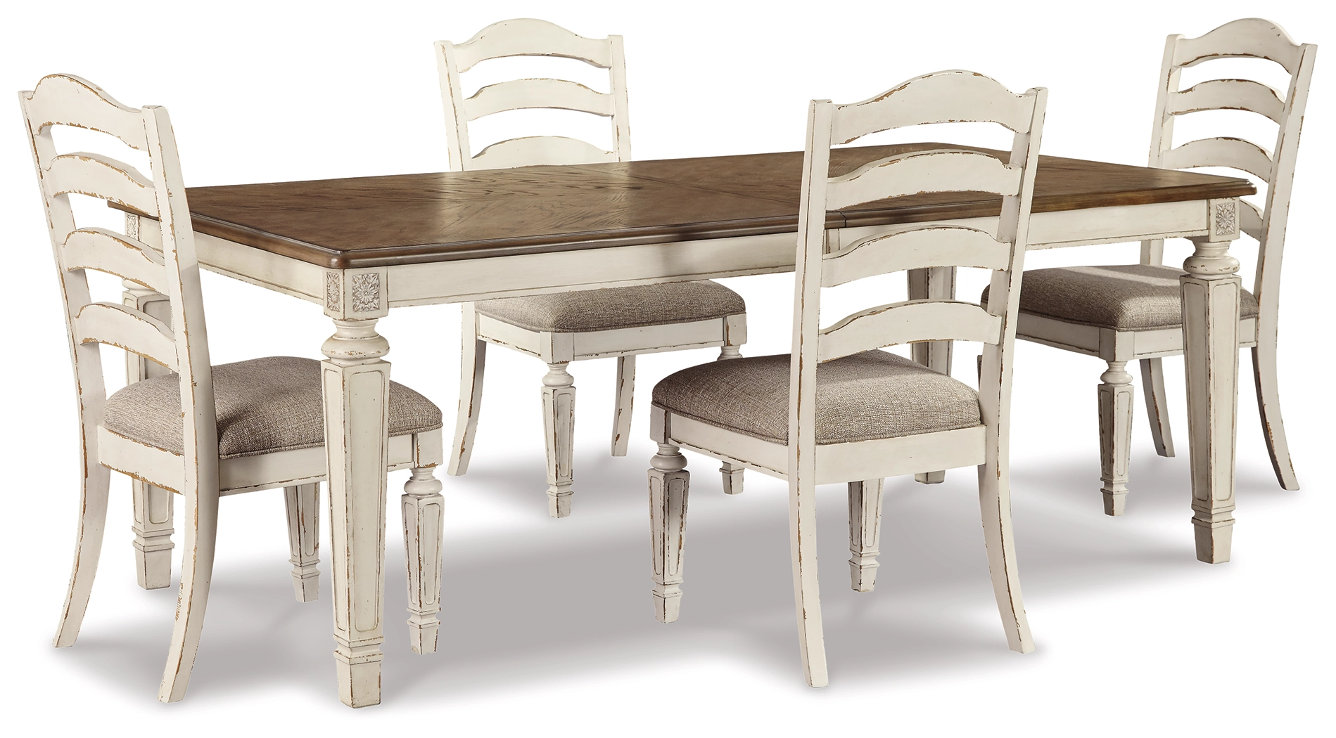 Bon appetit. This dining package has all the right ingredients for a French country-inspired feast for the eyes. Enhance your dining area and serve up a place for casually cool entertaining. Its antiqued two-tone aesthetic pairs a chipped white with distressed wood finished top and for twice the charm.