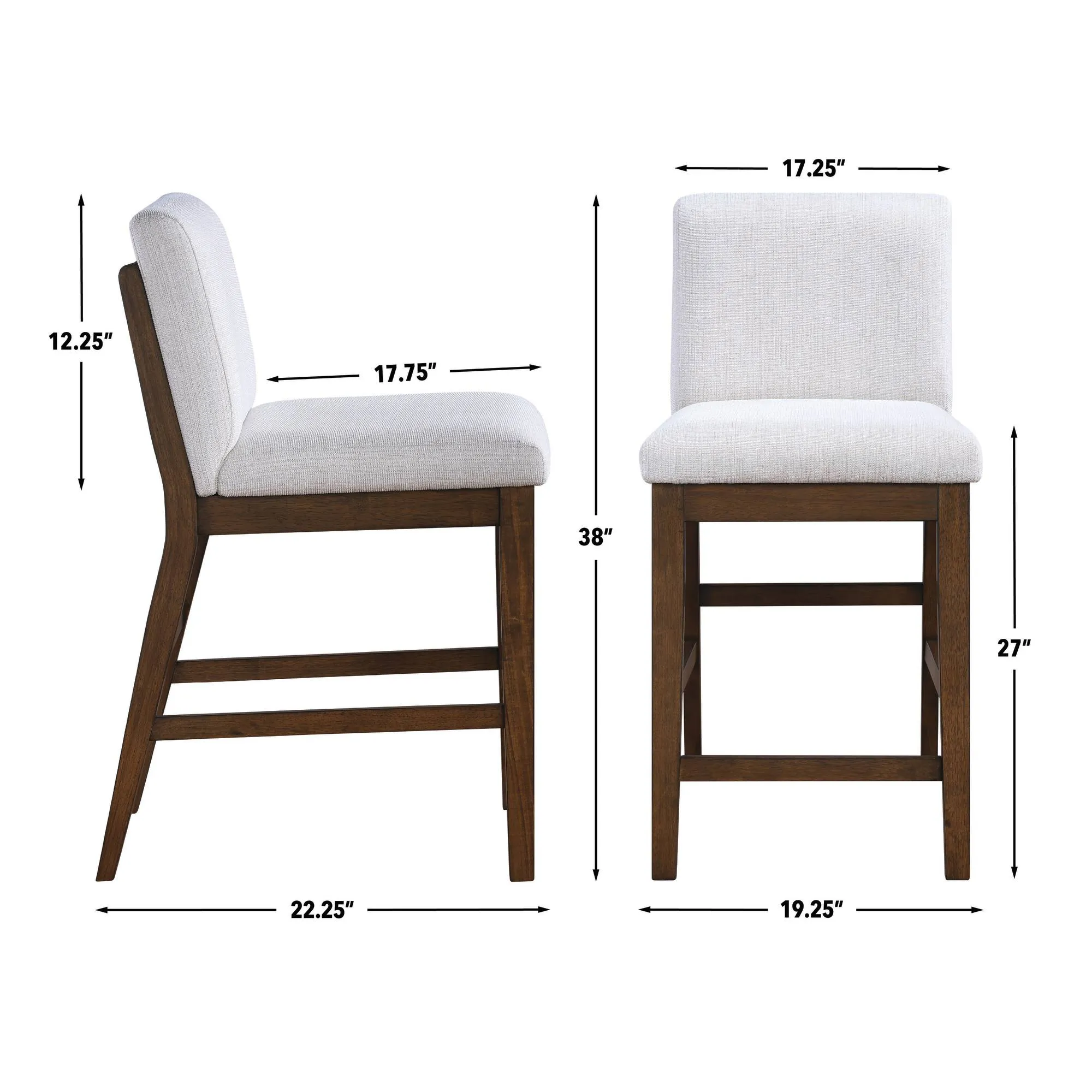 - The 24″ Counter Stools are solidly constructed with solid wood legs, mortise-and-tenon joinery and corner blocks for exceptional stability. Front and Side Stretchers reinforce the frame by adding structural stability while also offering a convenient footrest while sitting at a counter.