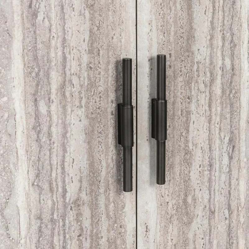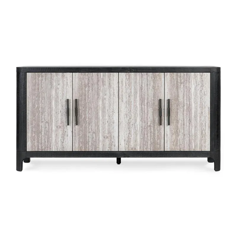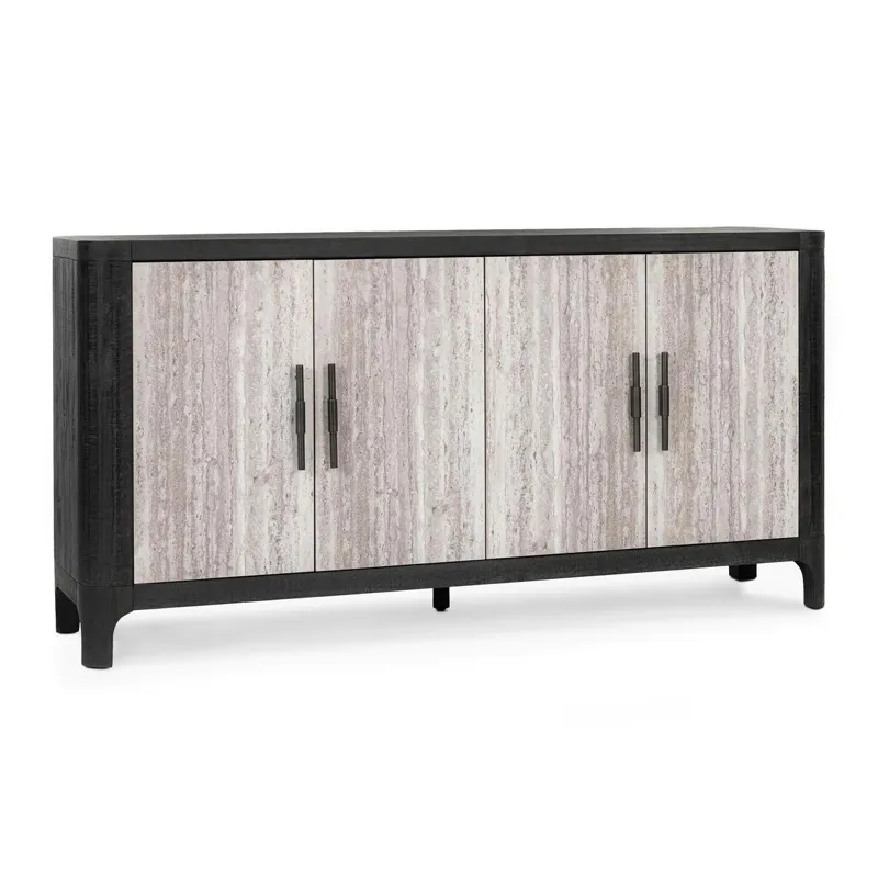 Redefine your space with the Alpine Cabinet, where timeless design meets eco-conscious craftsmanship. Featuring sleek travertine laminate doors framed in reclaimed pine, this masterpiece shows natural textures making it as sustainable as it is stunning.