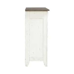 Al Fresco or dining in the outdoors brings to mind an open air natural feel. Al Fresco Casual Dining is a fresh approach to a casual rustic style. Two tone finish with tops of the tables in Graphite and the base in a Whitestone. Tops feature planked design with round/square peg accents. Tapered block legs carry the casual rustic theme of the group.
