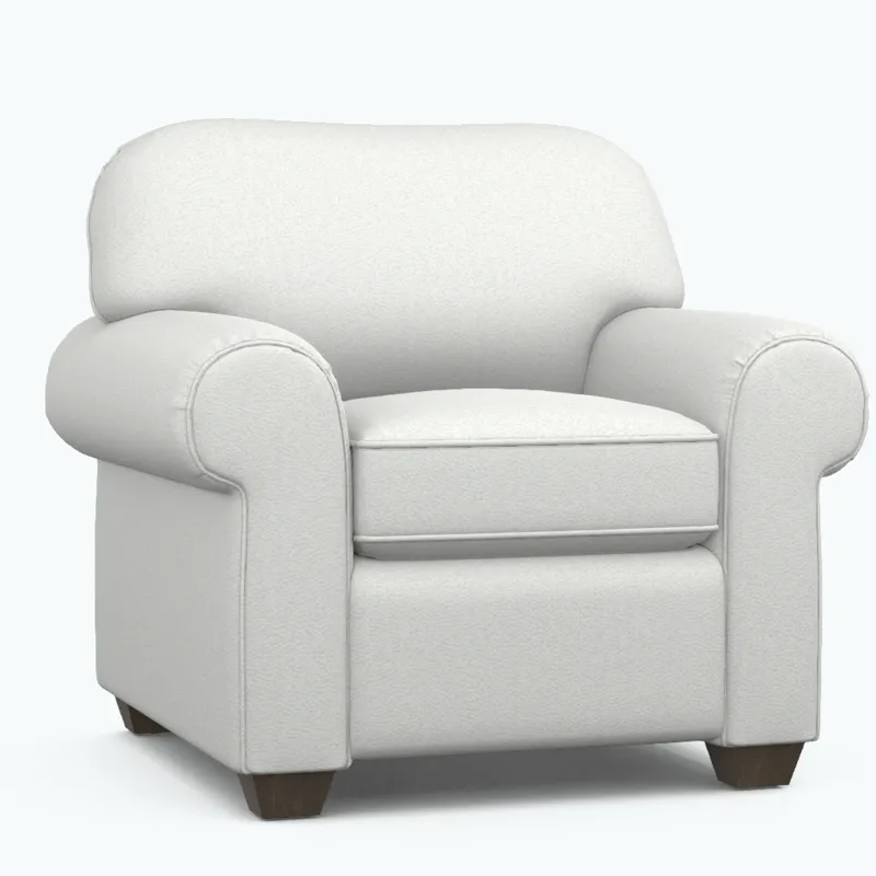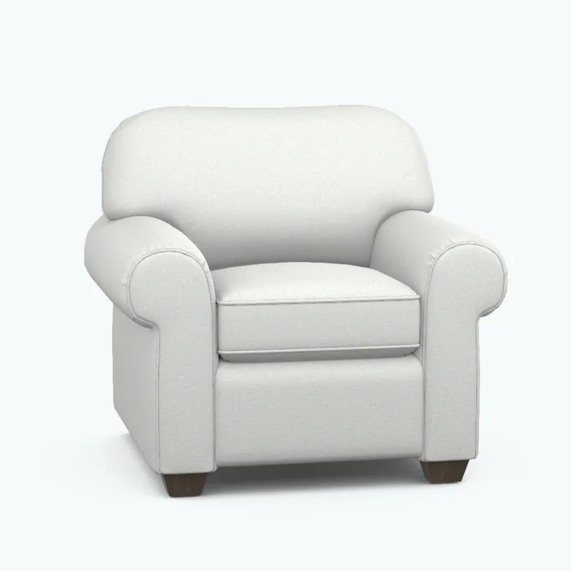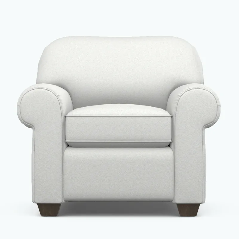 Showcase your home with the timeless charm of the Thornton chair. Smoothly rolled edges and arms, tapered block legs, and a welt-corded trim make it the quintessential living area piece. Offered in your choice of fabric, this chair provides the style and comfort that has made it one of our long-time best sellers.
