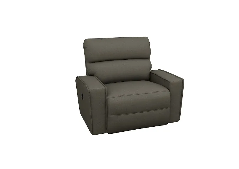 The Maddox Reclining Chair and a Half makes a bold impression with its modern lines and cozy vibe. The extra-wide reclining back, spacious waterfall chaise seat and adjustable legrest are inviting, and broad track arms with flange trim add flair.