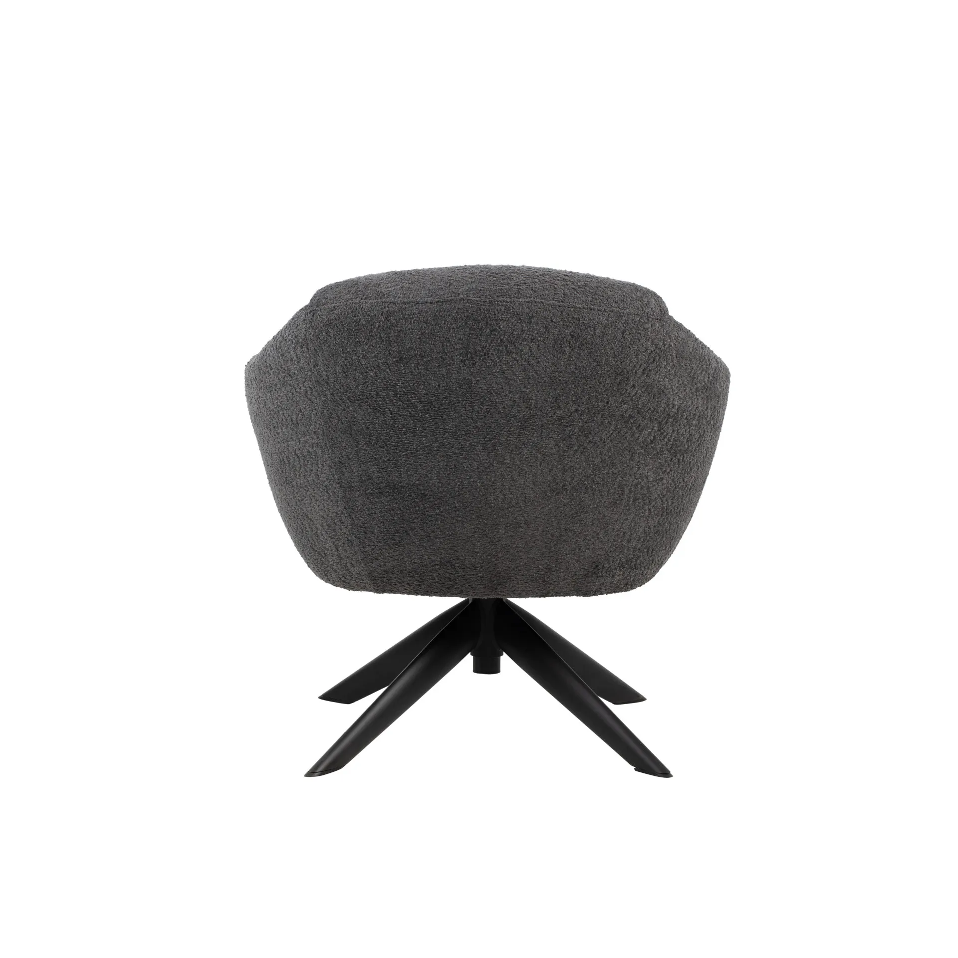 The Fleming Gray Boucle Swivel Lounge Chair offers the perfect blend of comfort and functionality, making it an ideal choice for relaxed gatherings. With its gently curved silhouette and generous padding, this chair provides plush seating in an inviting design. The 100% polyester boucle fabric delivers a cozy, tactile experience, while being easy to maintain for everyday practicality. The black iron swivel base offers smooth, reliable 360° motion and adds a sleek contrast to the soft light gray fabric. This lounge chair combines modern style, comfort, and durability, making it a versatile addition to any space