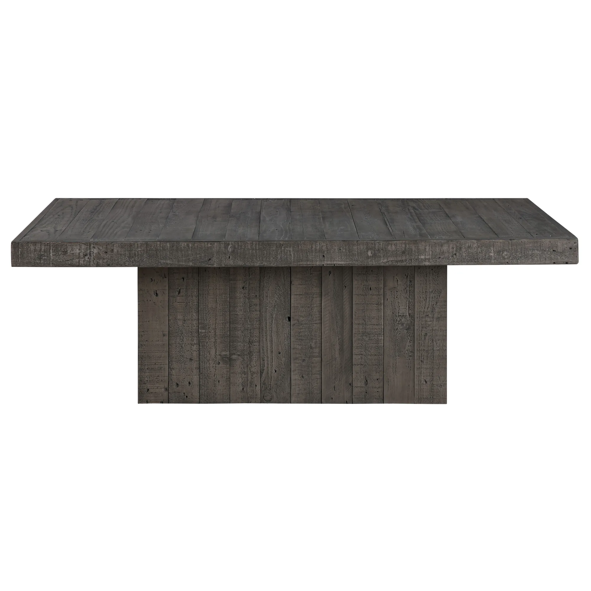 Designed with a bold, modern profile, the Colson Coffee Table blends rustic charm and industrial elegance. Its 55" rectangular silhouette, crafted from reclaimed pine wood, features a deep charcoal finish that adds warmth and character to any room. The sturdy pedestal base ensures stability while providing a clean, streamlined look. Its spacious tabletop offers ample room for decor, entertaining, or daily essentials. Perfect for contemporary and farmhouse-inspired spaces, the Colson Coffee Table makes for a true centerpiece for your home.