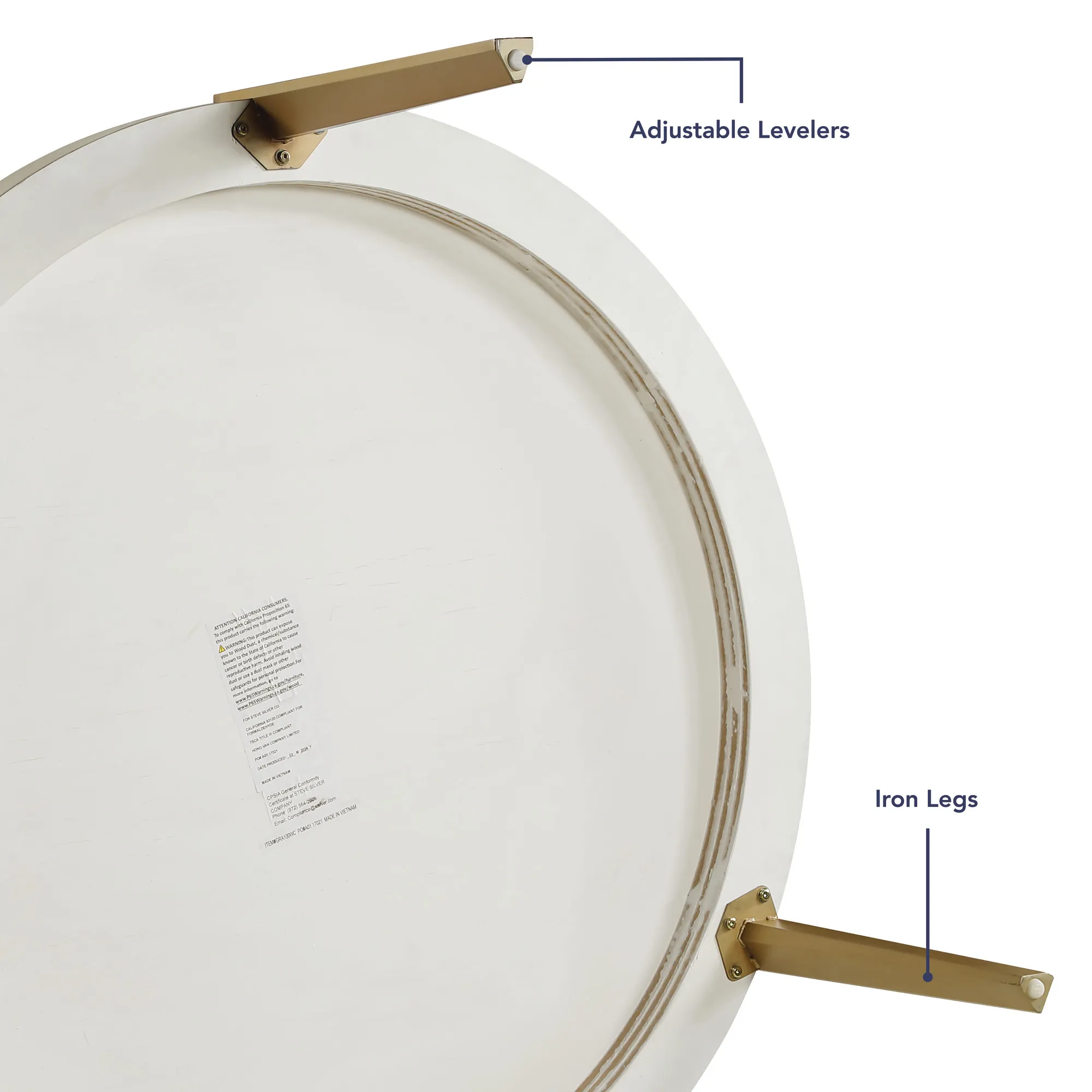 Elegant and commanding, the Gracie White Cocktail Table is a stunning blend of modern industrial charm and elegant design. This elegant and commanding 48-inch round table stands proudly on three satin gold finished metal legs, geometrically shaped and exposed on top, adding a bold, contemporary look. Its round, flowing silhouette with a washed white finish showcases oak veneers in a mesmerizing sunburst layup. Light and airy, this distinctive piece enhances any space with its impressive size and striking design, bringing both style and functionality to your room. Ideal as a centerpiece, it effortlessly combines beauty and utility.