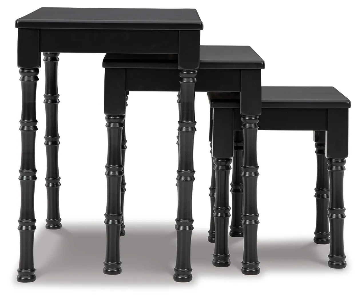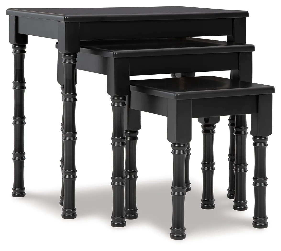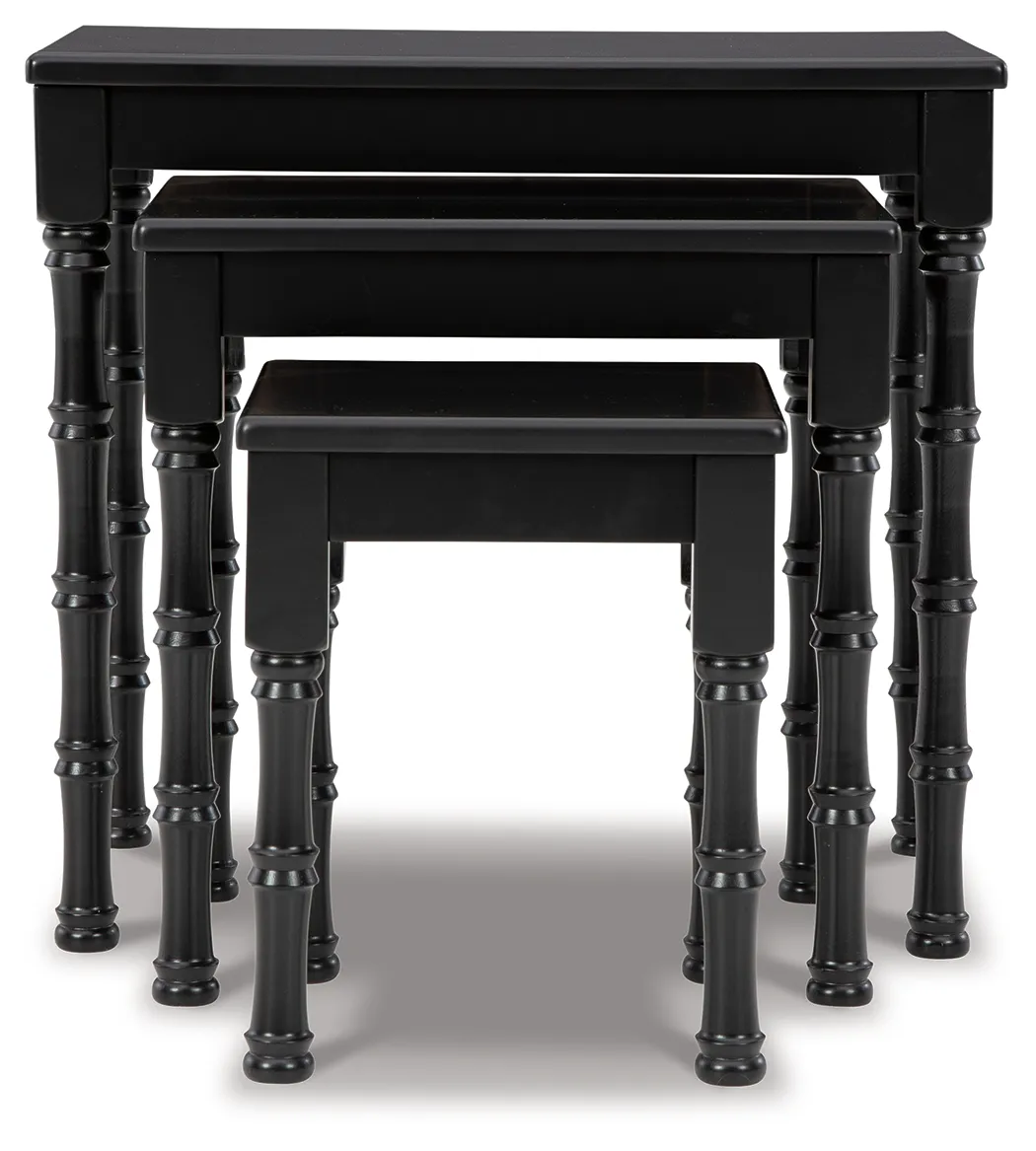 The perfect addition to any home, this 3-piece table set includes three different sizes of classical, black finish nesting tables. Space-saving nesting design is a smart choice on so many levels.