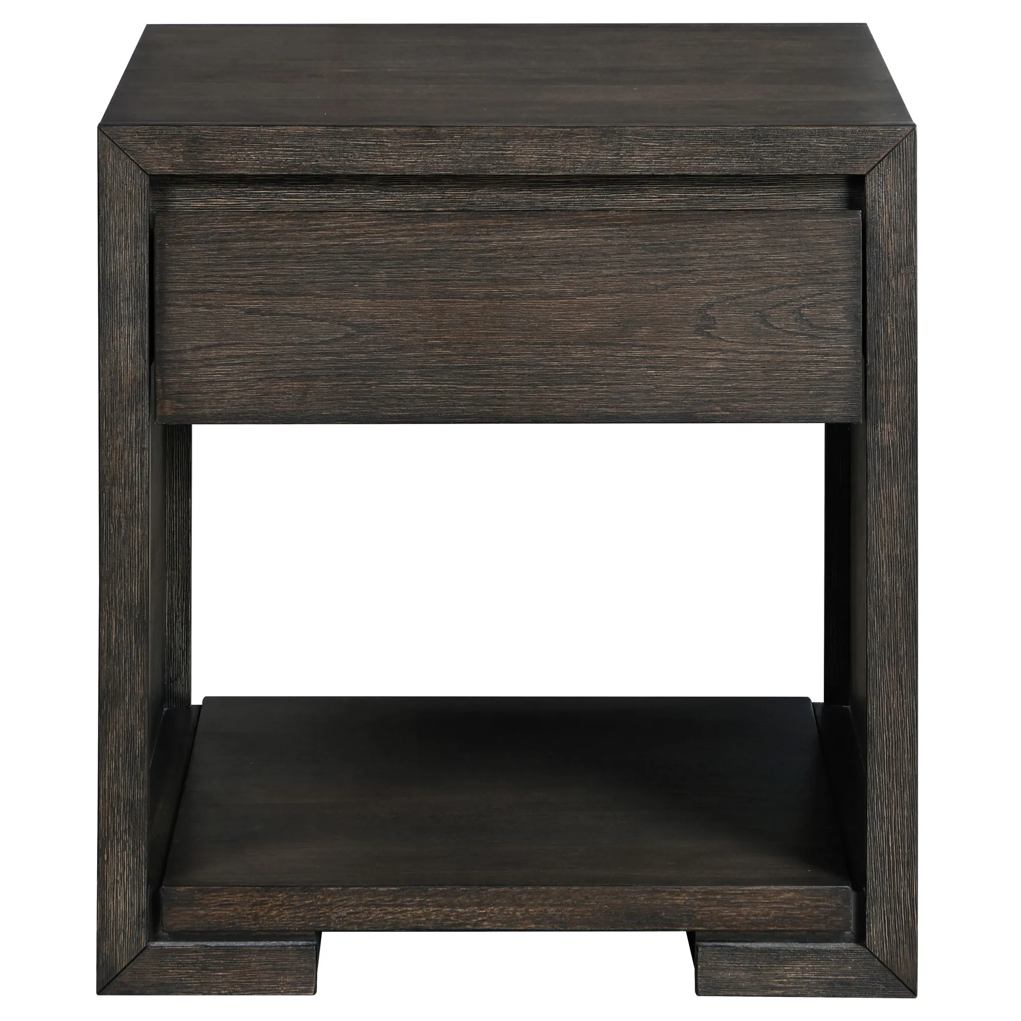 The 24″ Evan Side Table features a clean, minimalist design with a walnut finish over oak veneers. Its hardware-free exterior and bottom shelf provide organized space, while an open area offers additional storage or display options. A convenient drawer allows for easy storage of essentials. With its modern style and compact footprint, this side table is the perfect companion for your favorite chair, sofa, or loveseat.
