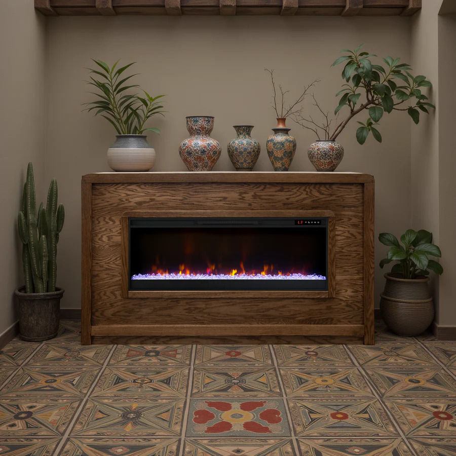 - Minimal Assembly required - use four (included) screws to secure fireplace insert to console
