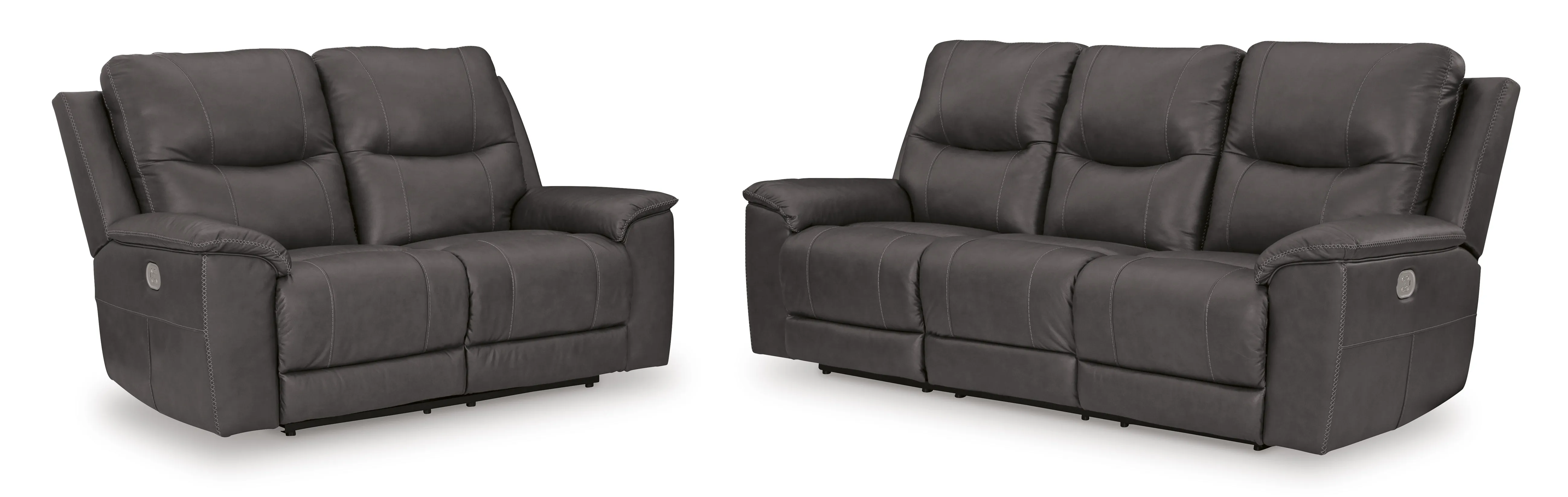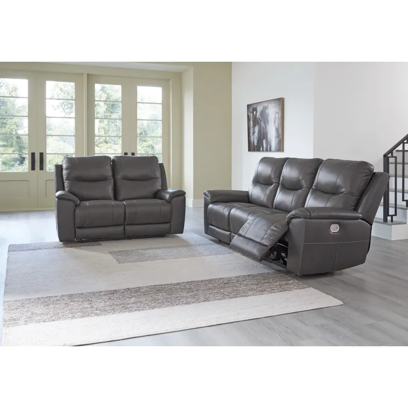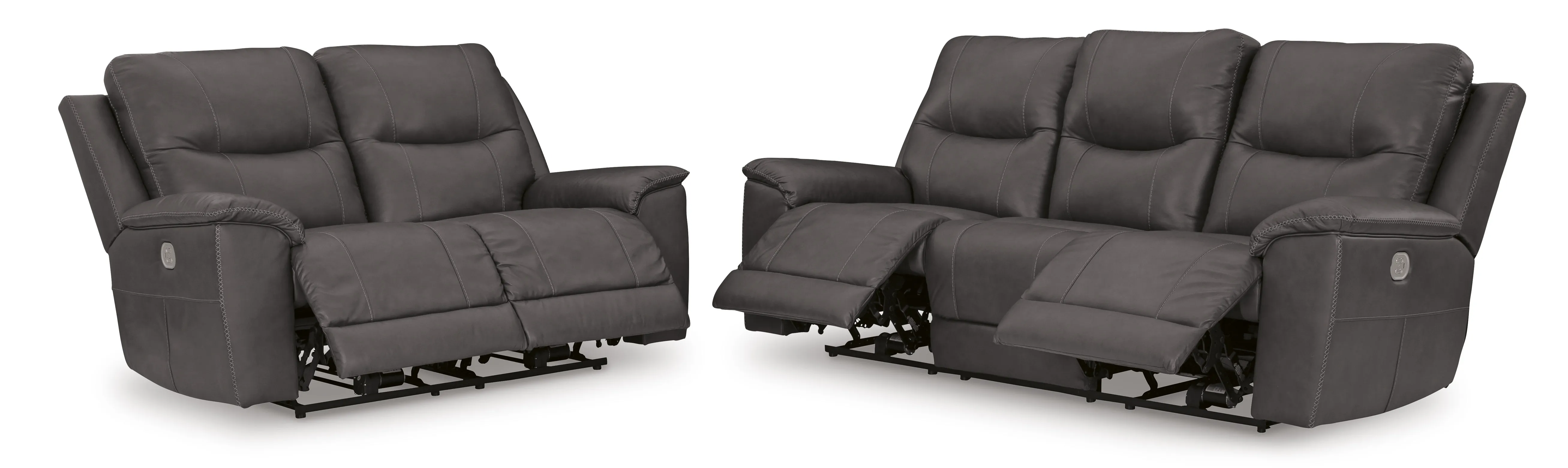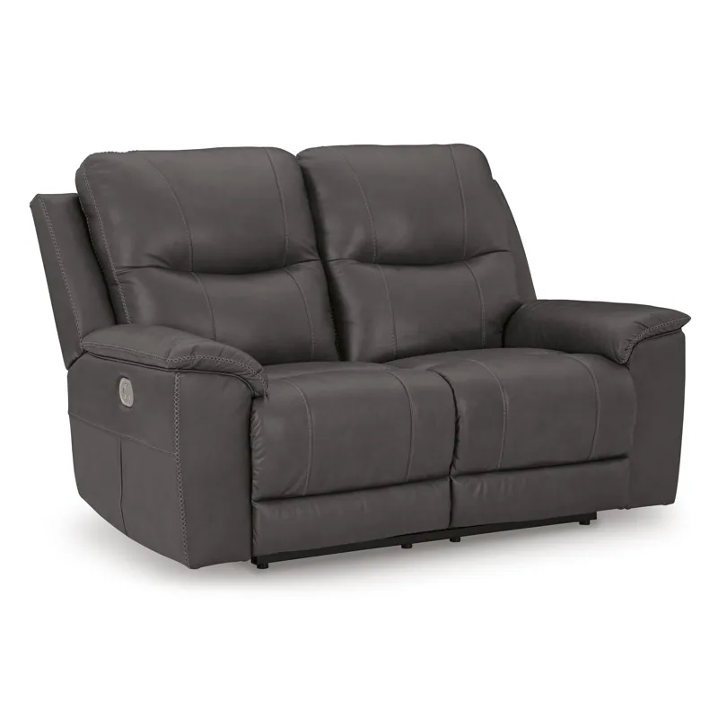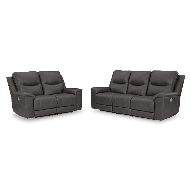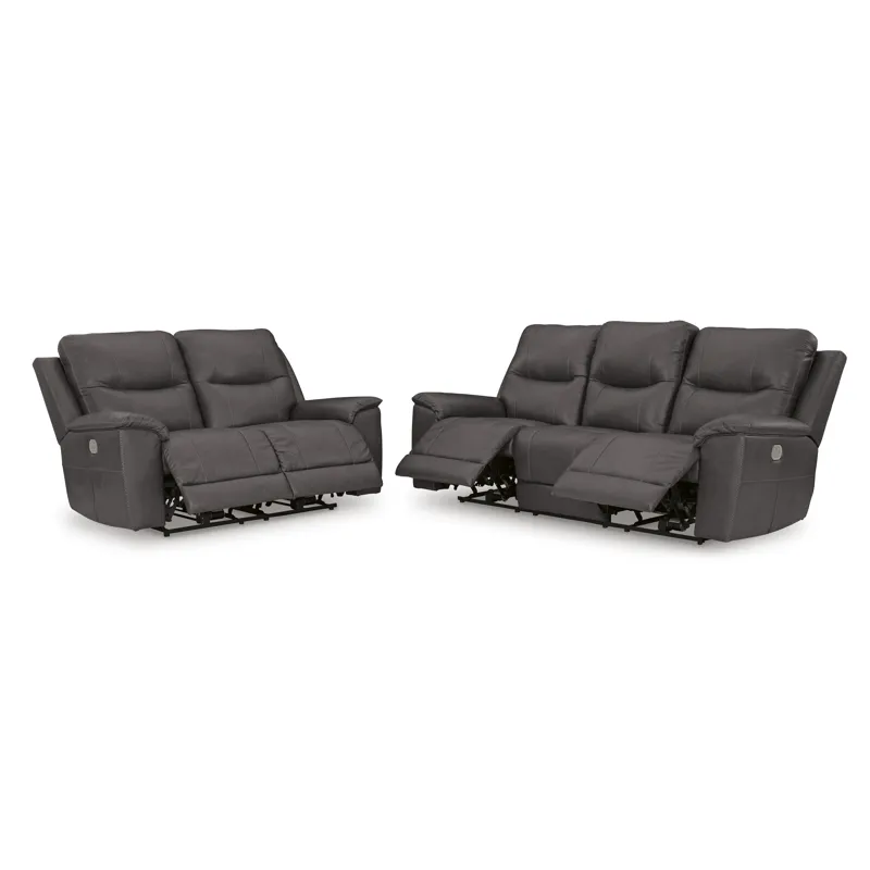 Indulge yourself in relaxation with this power loveseat & sofa. At the touch of a button, lean back effortlessly and bathe yourself in comfort. Adorned with a combination of skillfully matched leather and faux leather upholstery with exquisite stitching details, this piece invites you to sink into its inviting embrace. With a headrest that allows primo TV viewing no matter how far back you recline—plus an extended ottoman to really stretch out—it will be your faithful companion for pure bliss.