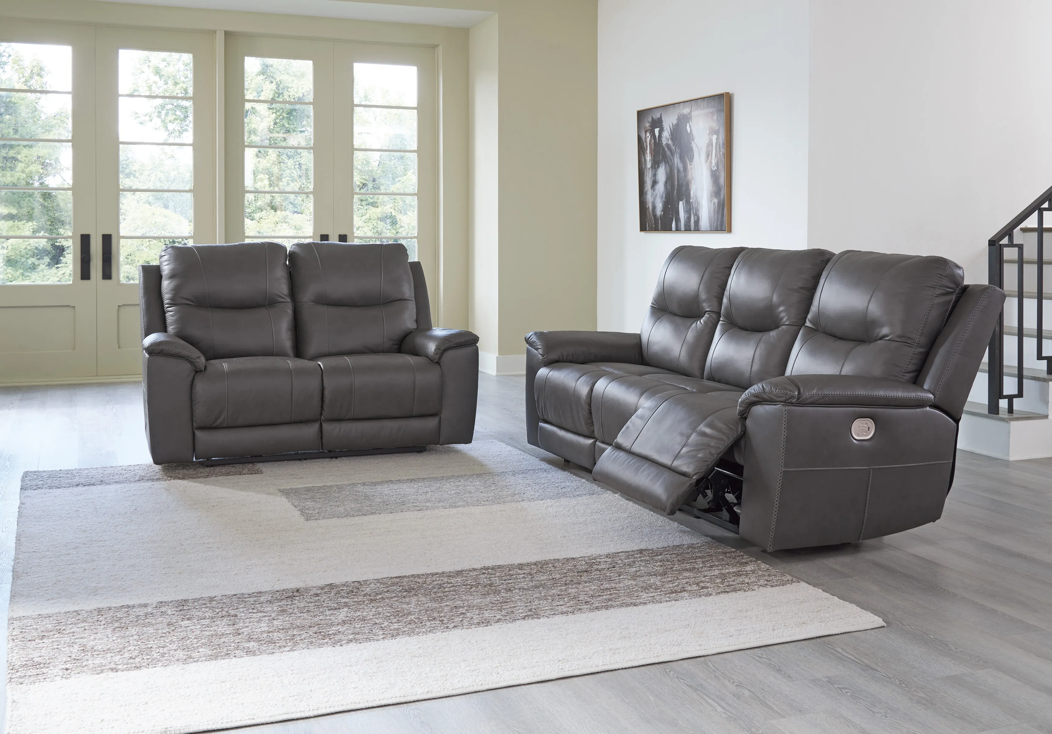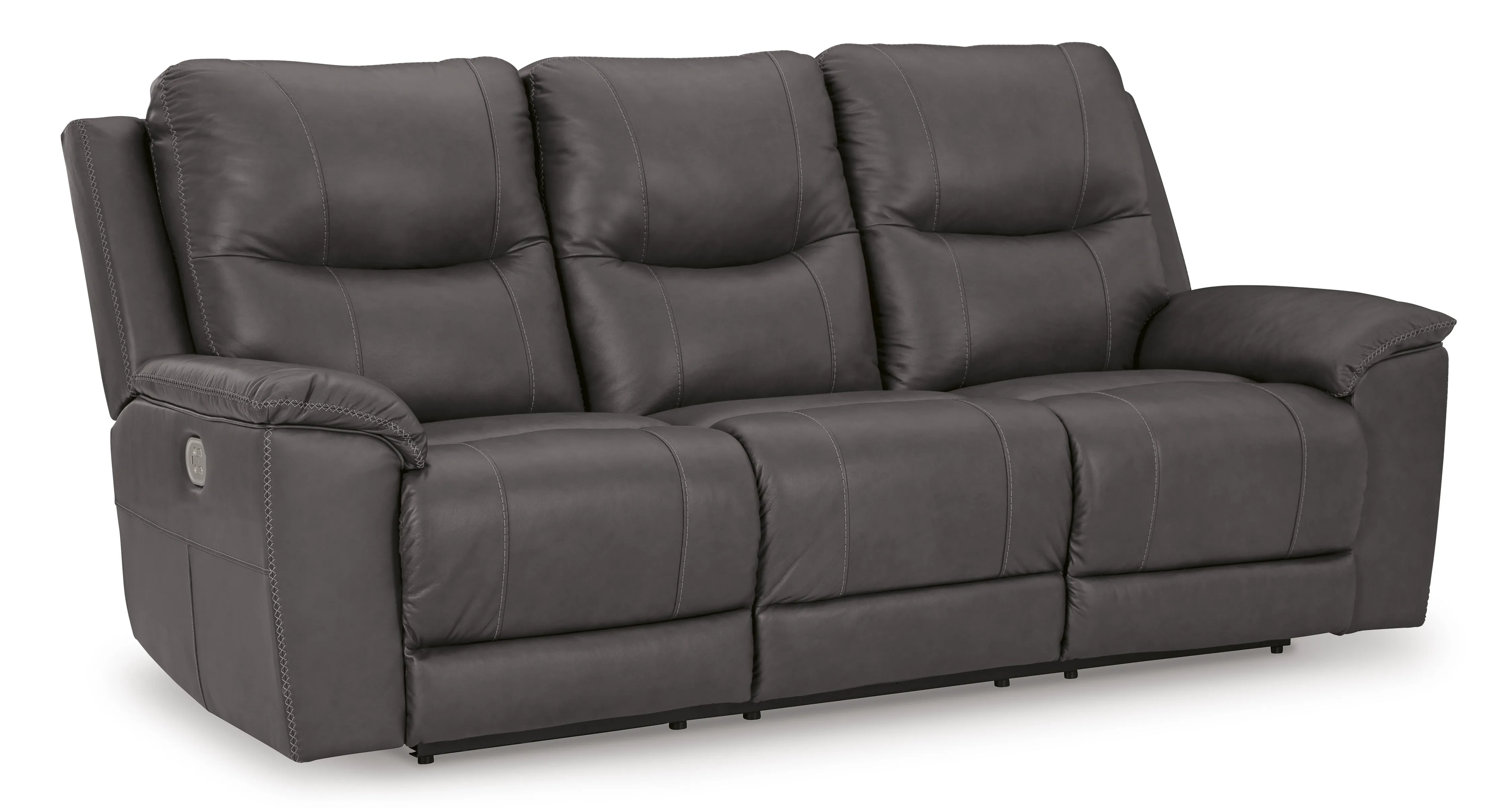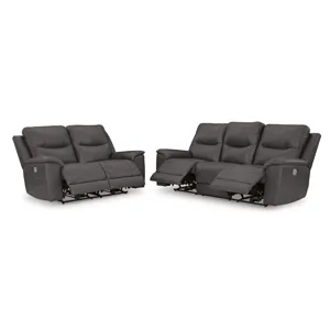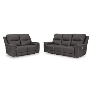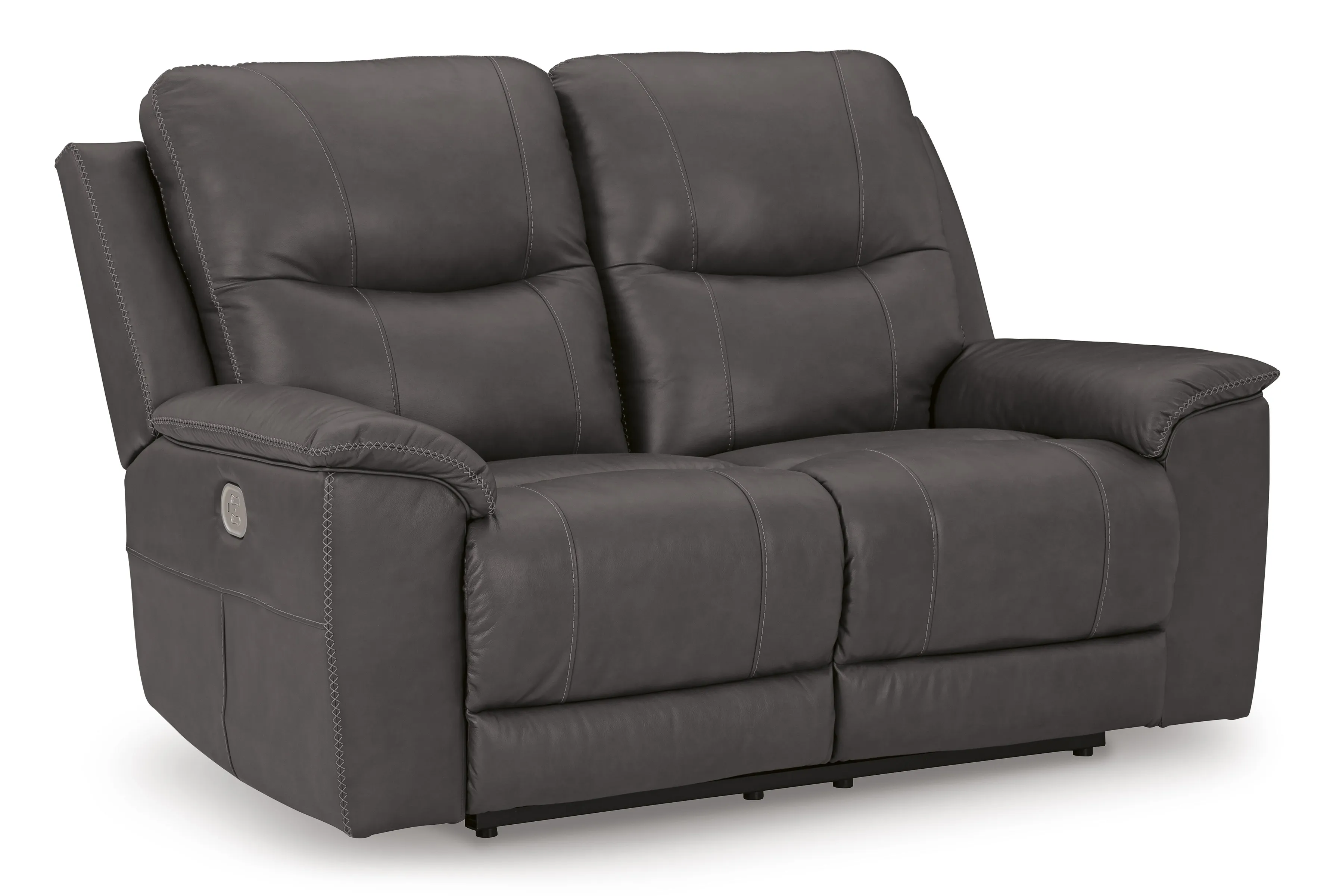 Indulge yourself in relaxation with this power loveseat & sofa. At the touch of a button, lean back effortlessly and bathe yourself in comfort. Adorned with a combination of skillfully matched leather and faux leather upholstery with exquisite stitching details, this piece invites you to sink into its inviting embrace. With a headrest that allows primo TV viewing no matter how far back you recline—plus an extended ottoman to really stretch out—it will be your faithful companion for pure bliss.