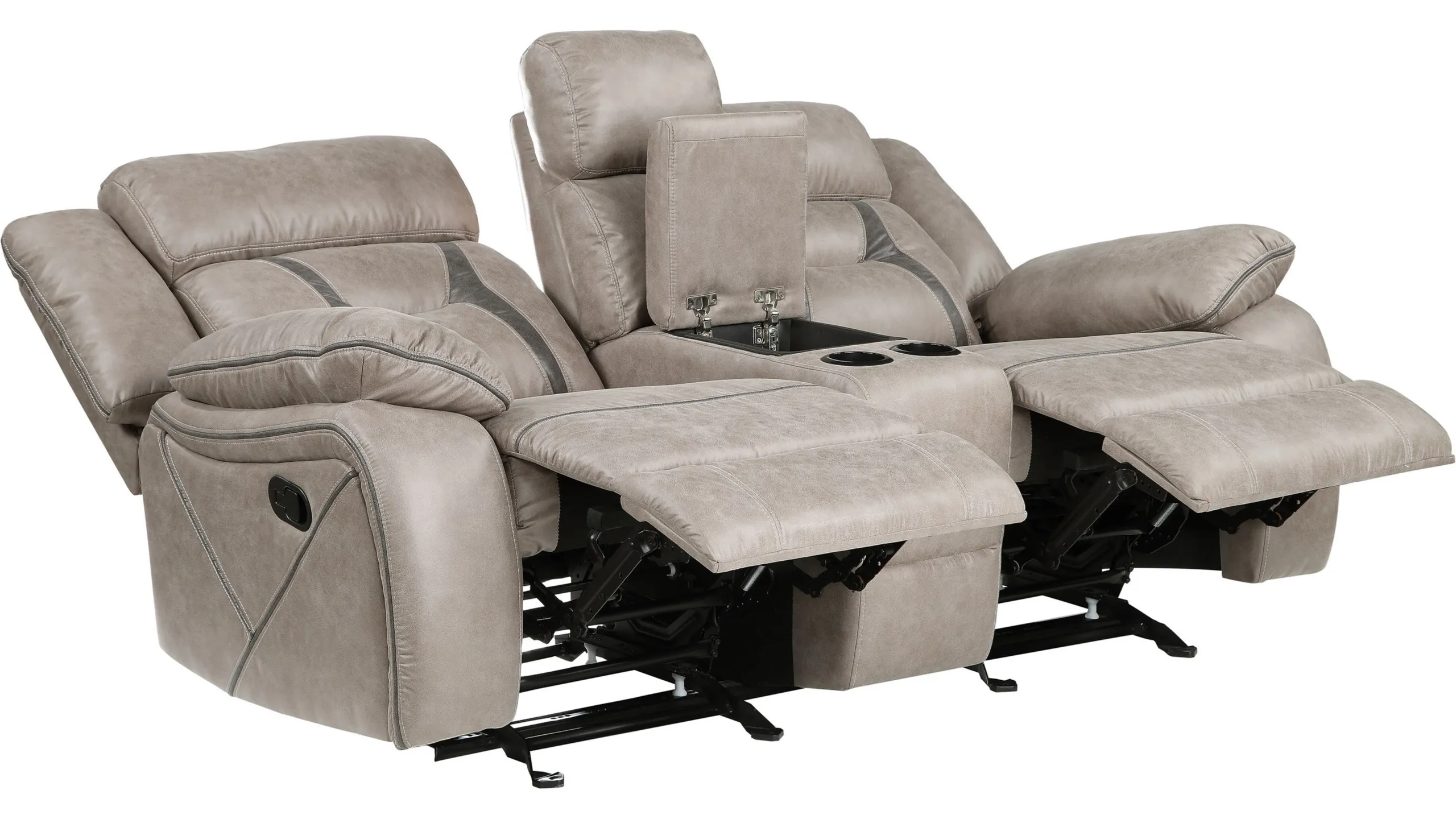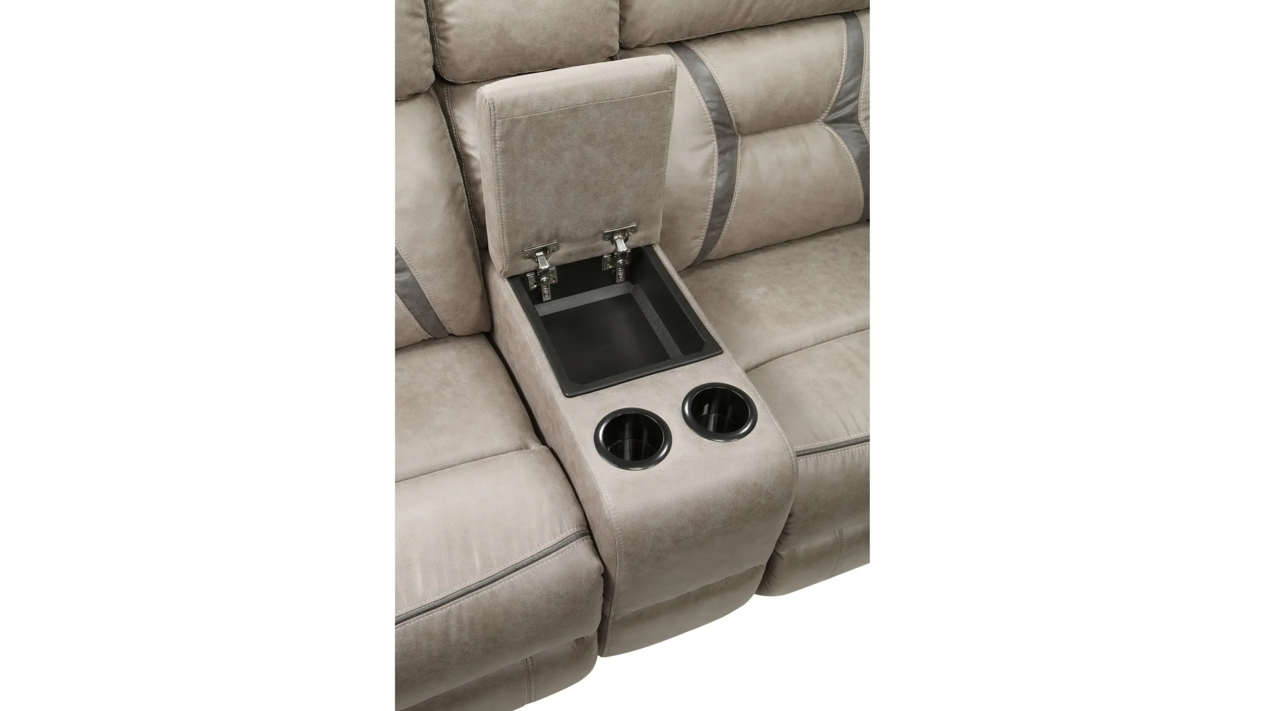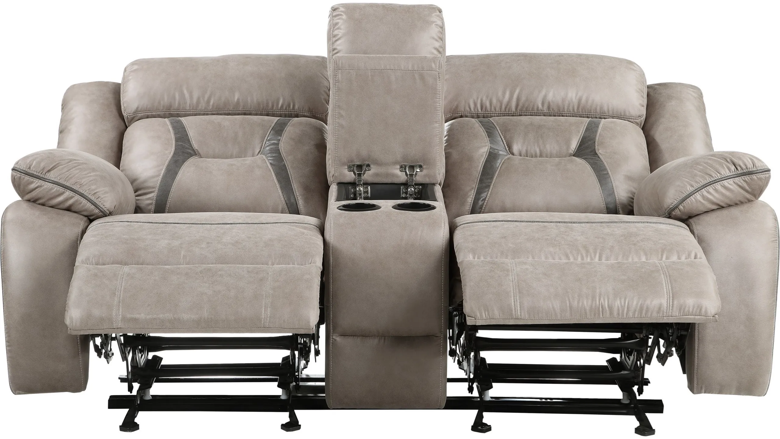 Sink back and sink into this casual manual glider loveseat. With pillow arms, generous cushions, a center console, and cup holders, this piece is everything you need to relax after a long day.