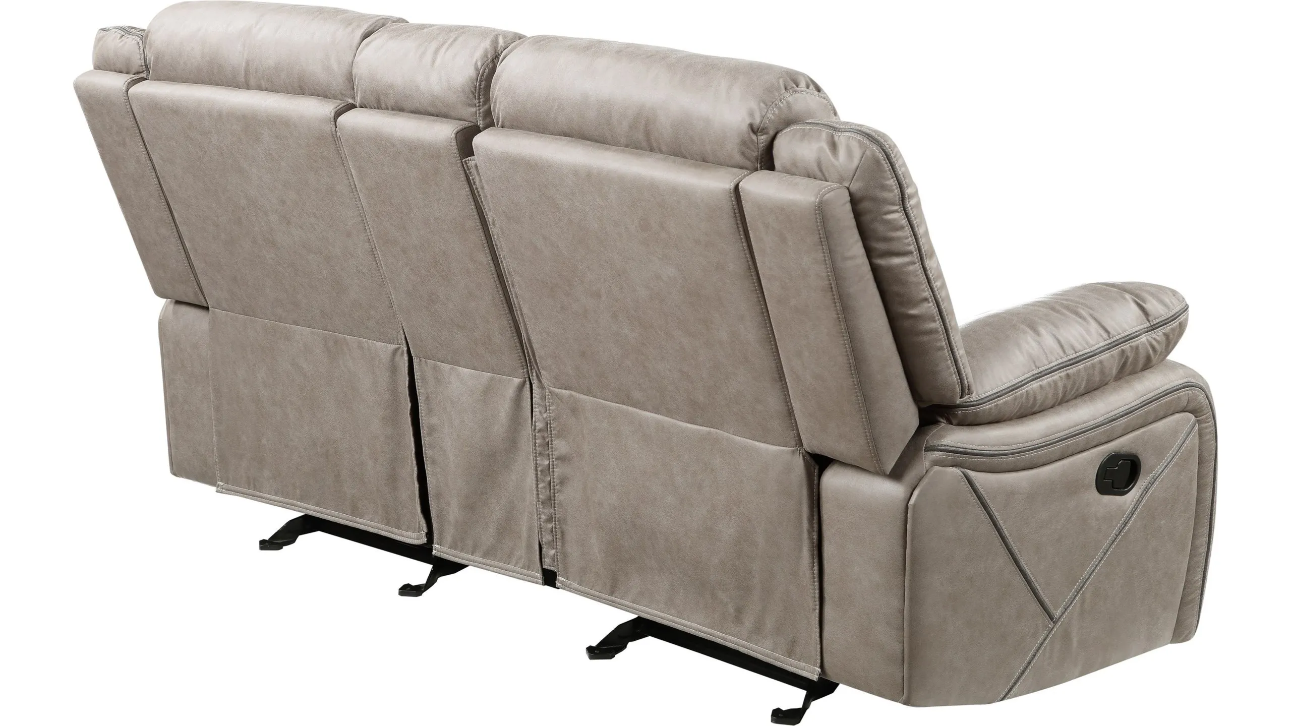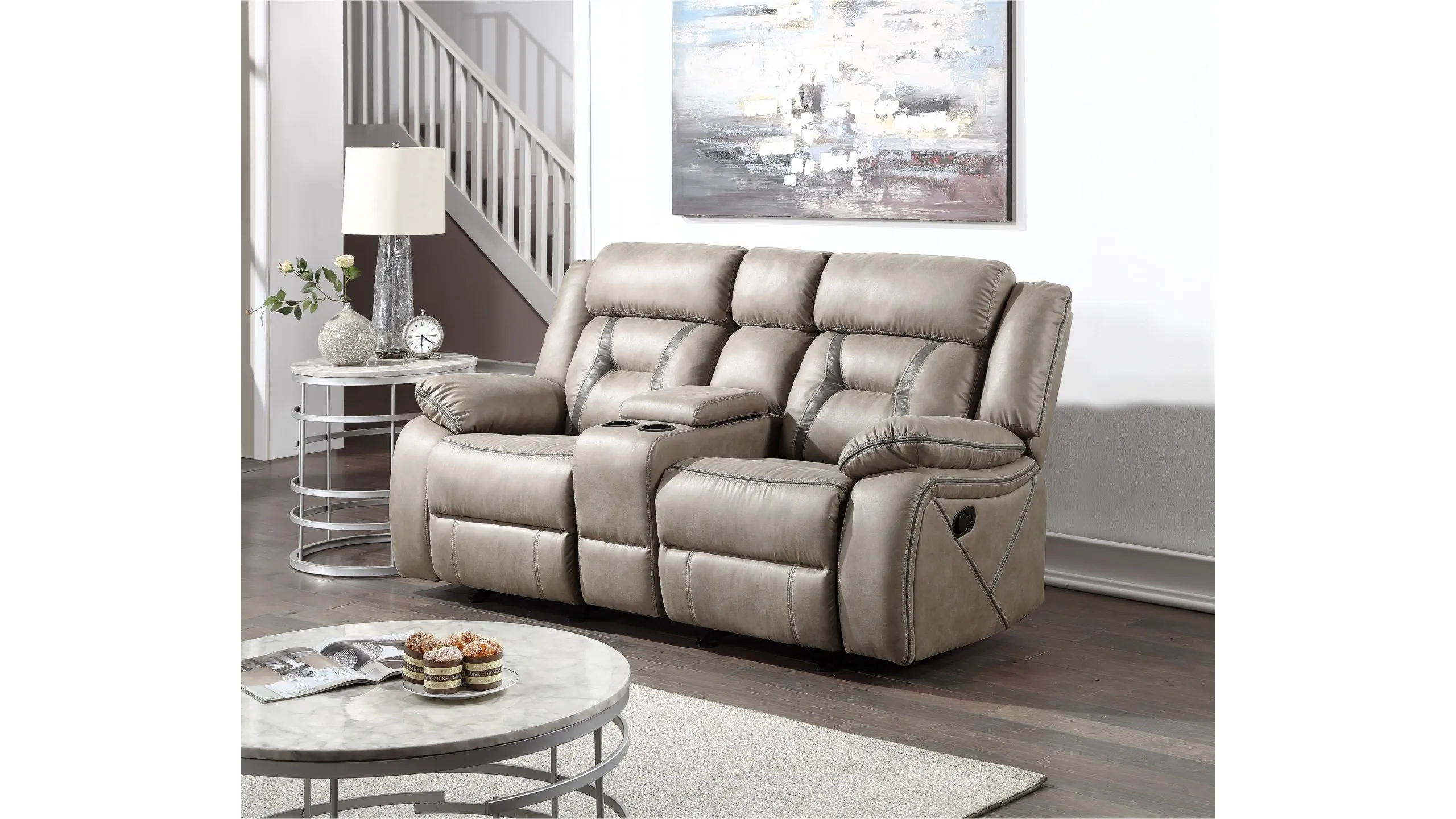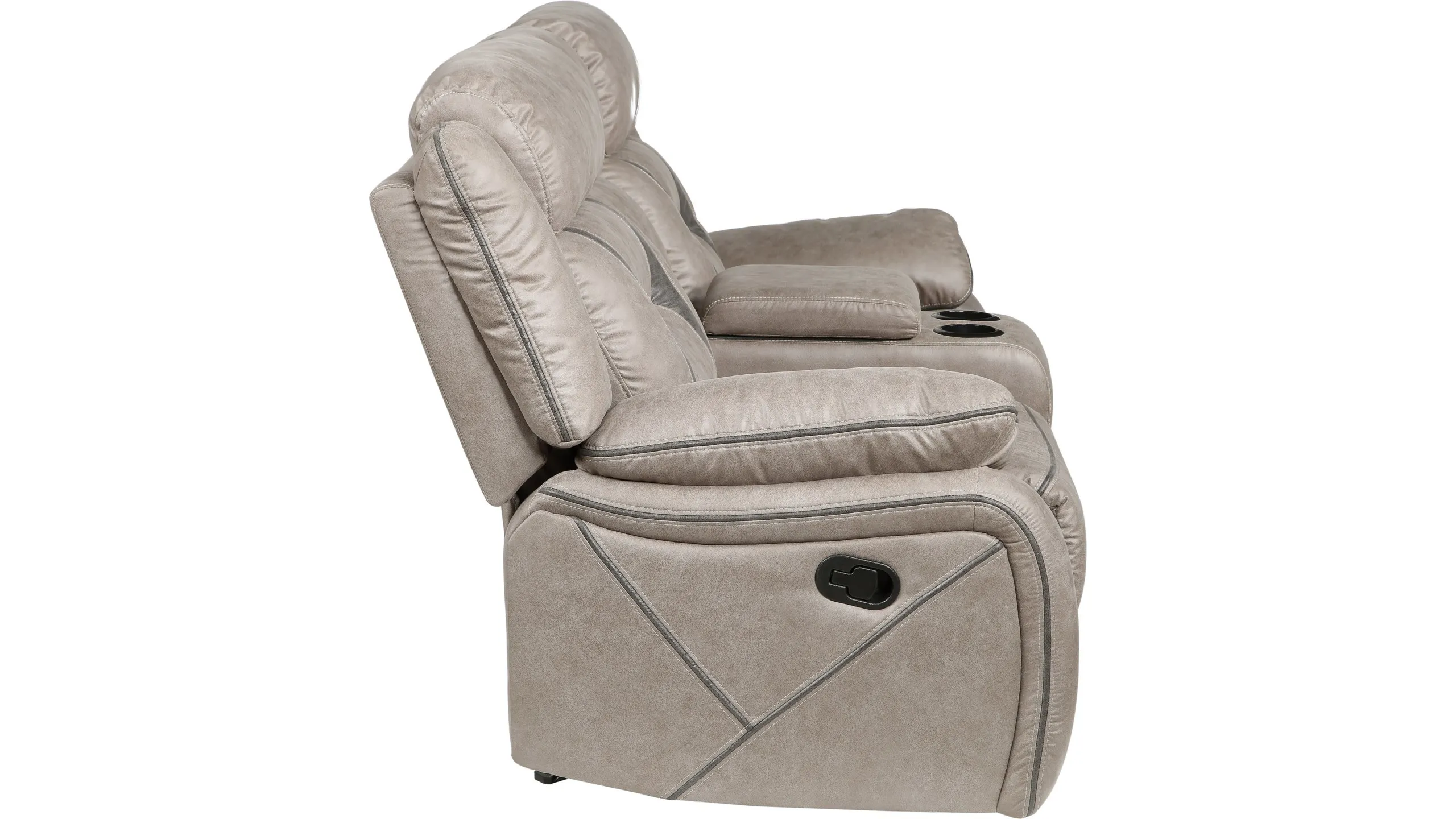 Sink back and sink into this casual manual glider loveseat. With pillow arms, generous cushions, a center console, and cup holders, this piece is everything you need to relax after a long day.