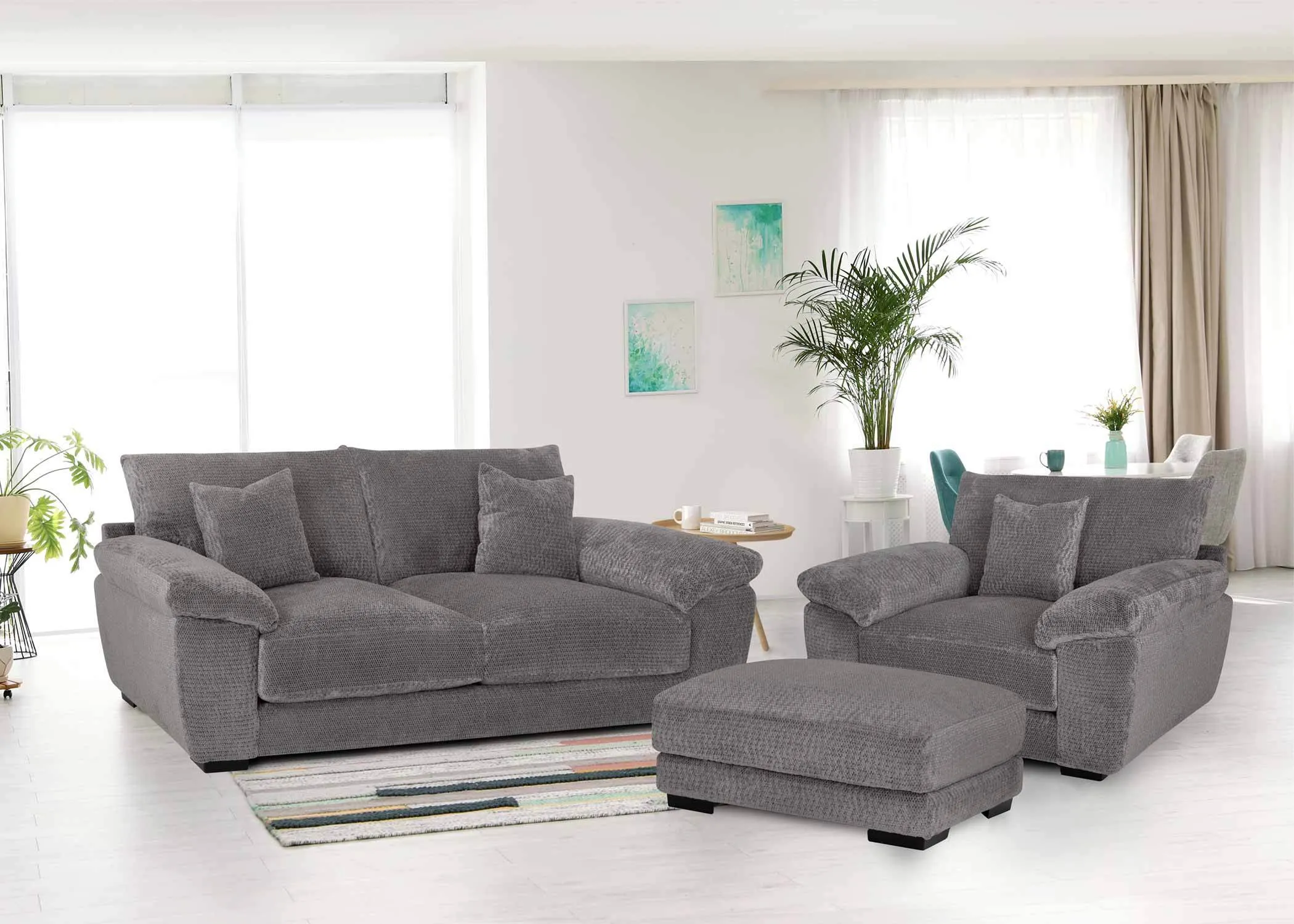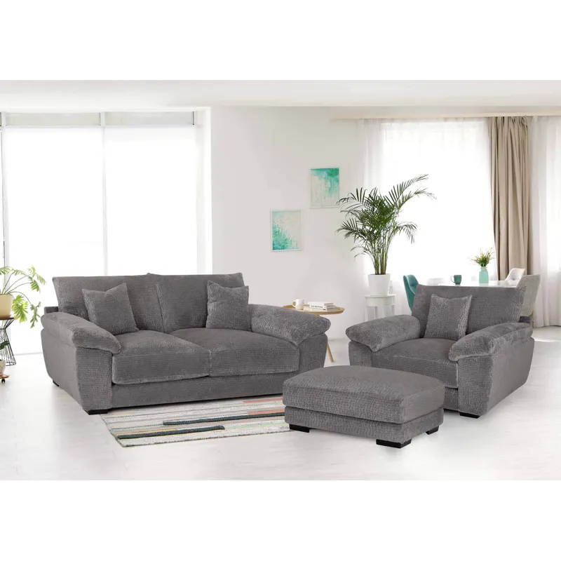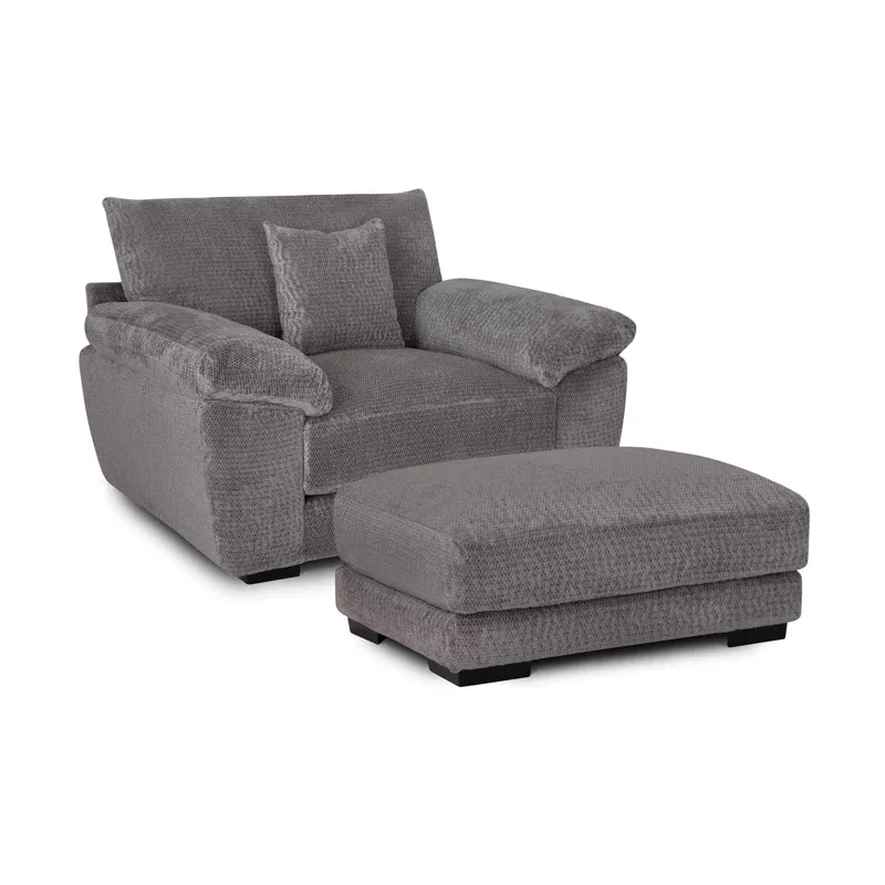 The epitome of casual comfort, the 840 Shimmer Collection is perfect for lazy weekend napping or hosting a movie night. This collection includes a sofa, chair and a half, and matching ottoman. Each piece is covered in a soft, durable gray fabric. Coordinating pillow in the same fabric are included, completing the overall look.