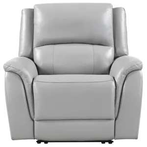 Euro-styled recliner with sleek style and clean lines. The Alpine recliner is covered in decadently soft leather fronts and have power headrest and power footrest functionality. The headrest lays flat when closed for a look that does not scream recliner and the gray cover blends with virtually any decor.