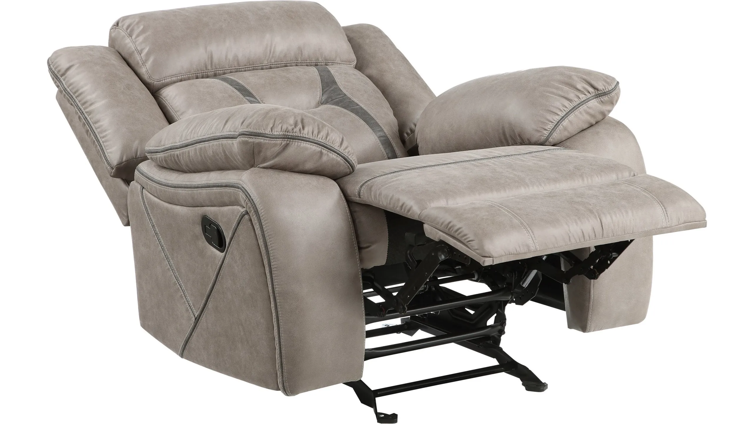 Sink back and sink into this casual manual glider recliner. With pillow arms and generous cushions, this piece is everything you need to relax after a long day.