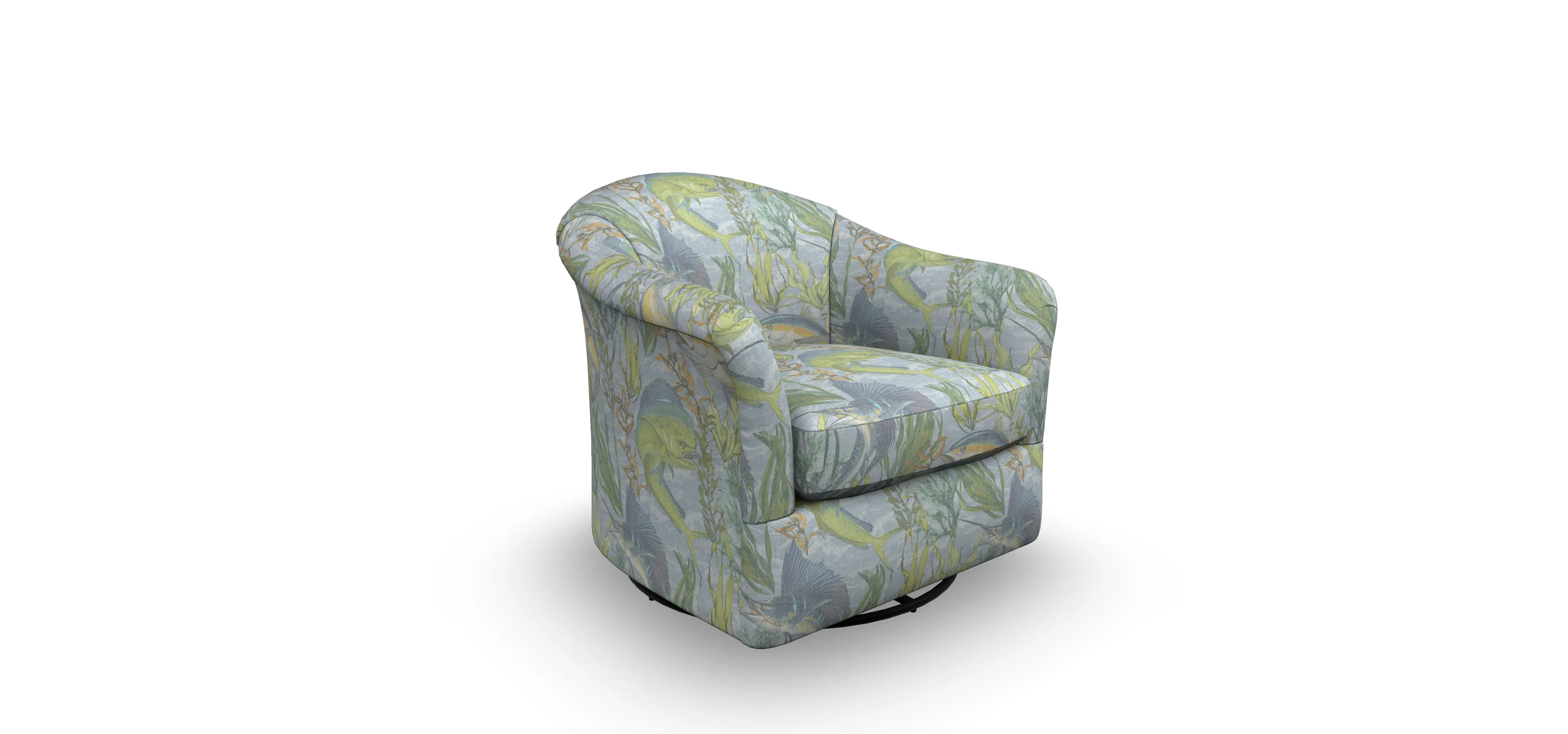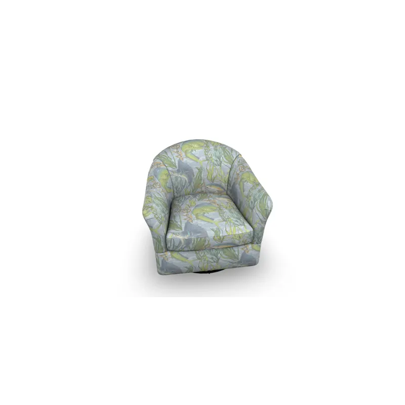Effortlessly glide in this contemporary barrel chair. Available as a swivel chair or swivel glider, this unit has a reversible seat cushion and a slightly rounded arm with a smooth, pulled over back. The back is also slightly taller than most barrel chairs.
