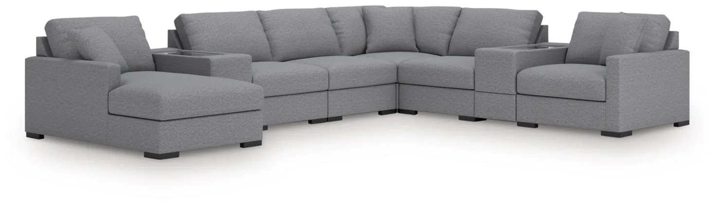Omaha by Ashley 7-Peice Sectional Left Arm Facing Corner Chaise (4340216), Armless Chair x3 (4340246), Console w/Sotrage (4340257), Right Arm Facing Corner Chair (4340265), & Wedge (4340277).