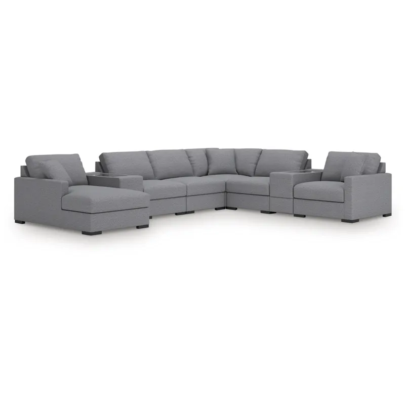 Omaha by Ashley 8-Peice Sectional includes Left Arm Facing Corner Chaise (4340216), Console w/Audio System (4340227), Armless Chair x3 (4340246), Console w/Sotrage (4340257), Right Arm Facing Corner Chair (4340265), & Wedge (4340277).