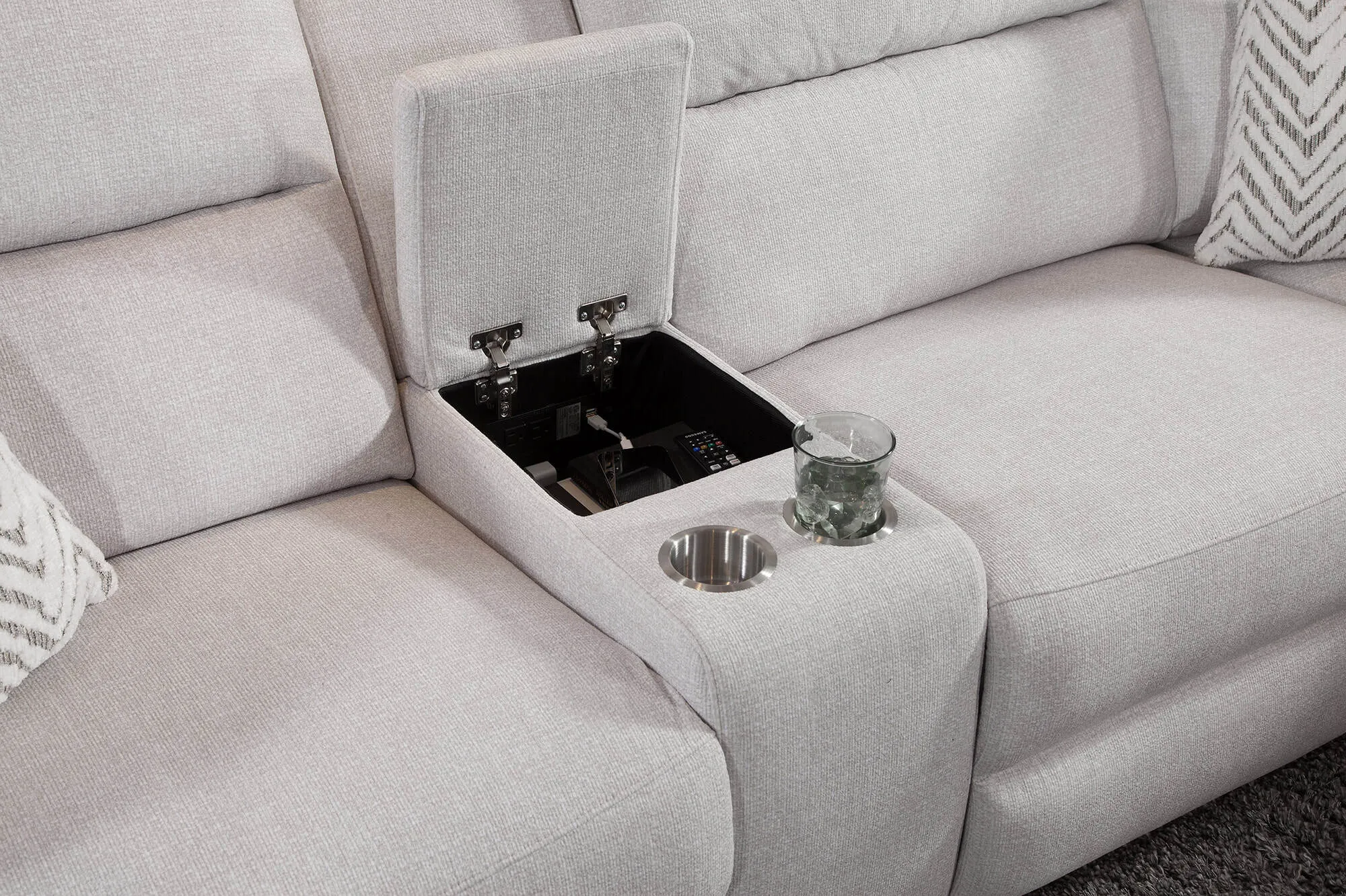 Console w Cupholder (BD7625-40-2207-10): Length: 13in | Depth: 38.6in | Height: 35in