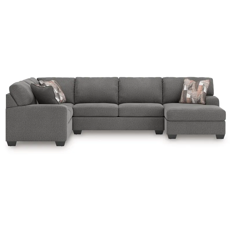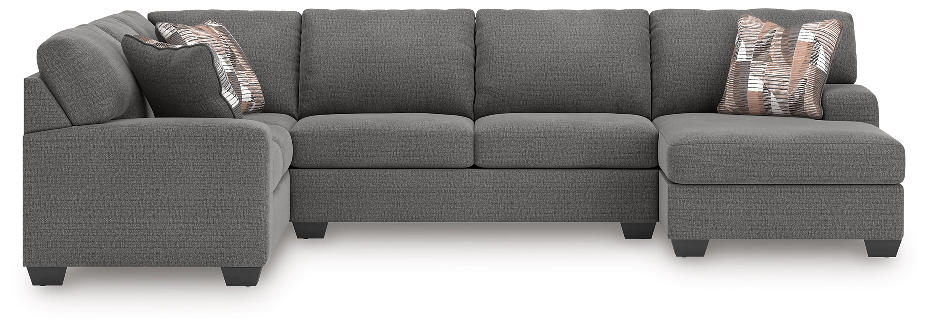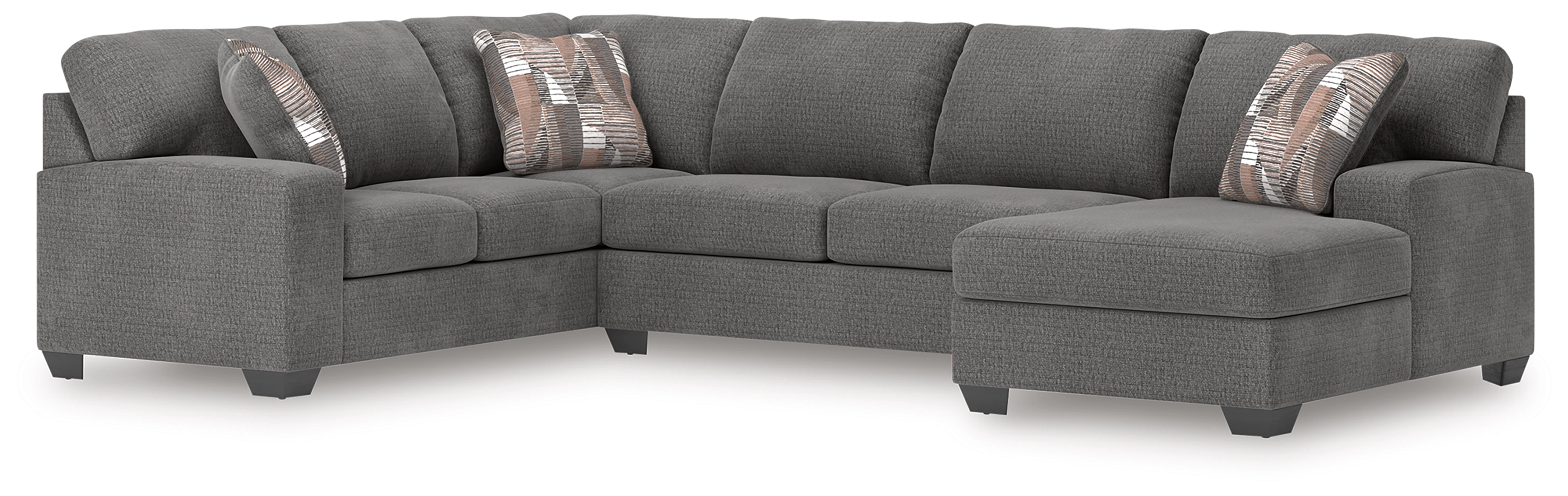 Includes 3 pieces: left-arm facing sofa with corner wedge, armless loveseat and right-arm facing corner chaise
