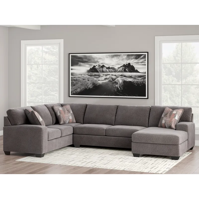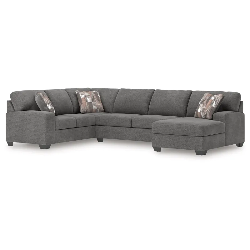 Why choose between classic comfort and modern design? This sectional with chaise welcomes day-to-day relaxation in style. Its dimensional, menswear-inspired upholstery brings a designer touch to the easygoing silhouette. Gear up for game night or settle in to stream your favorite show—this sectional is an ideal supporting character for your living room hangs.