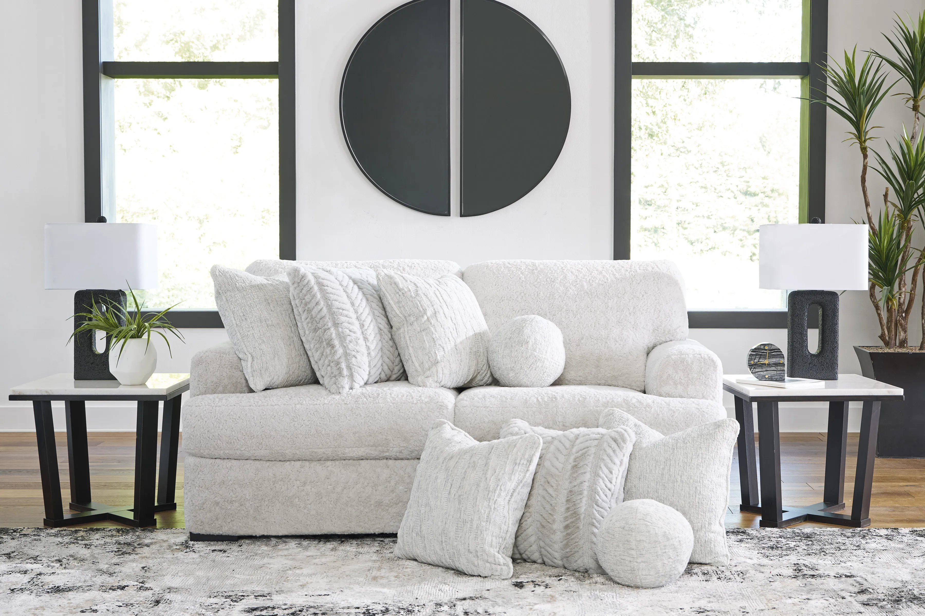 Accent pillows included; pillows with soft polyfill
