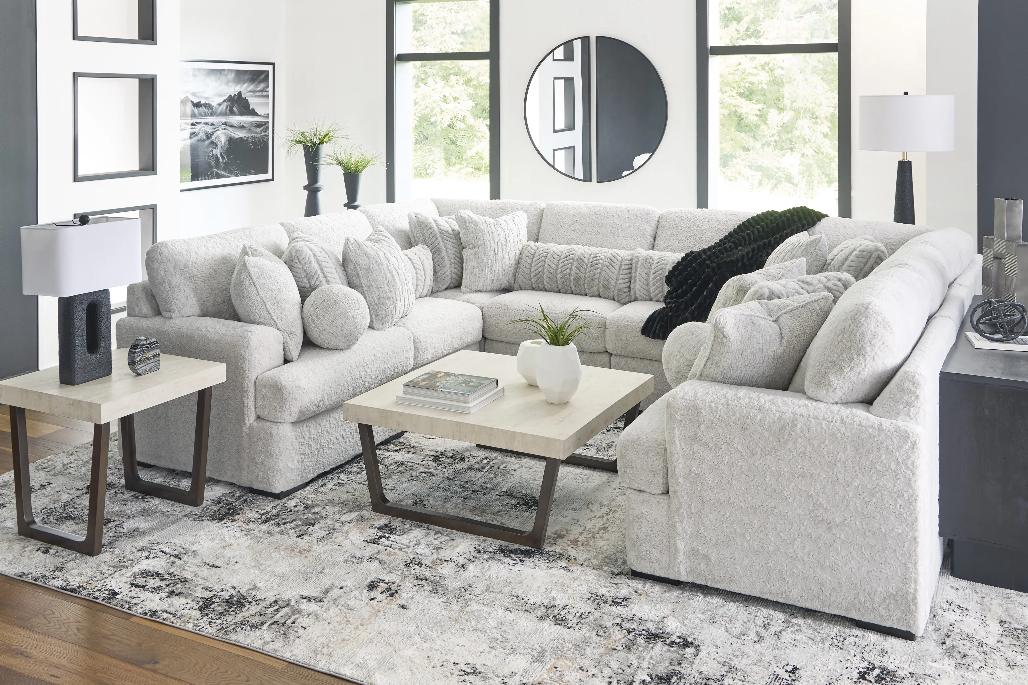 This plush sectional is the ultimate spot to unwind after a long day. Its ultra soft upholstery feels luxurious against your skin, while the roomy seats and comfy pillows provide support in all the right places. With plenty of space to stretch out or snuggle up with loved ones, this modular sectional is perfect for movie nights, game days and everything in between.