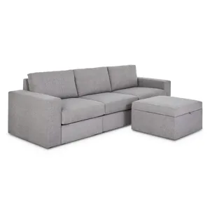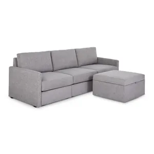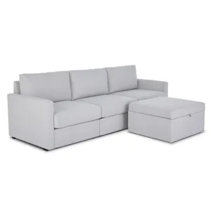 Designed for a lifetime of flexibility, the Flex sofa with storage ottoman makes the perfect gathering spot for relaxing and the ottoman can be a standalone piece or pushed up against one end to make a chaise lounge. Easily expand and reconfigure the sofa as needs change. Built with Blue Steel Spring technology and sustainable stain-resistant performance fabric, the Flex sofa provides deep-seated, blissful comfort and long-lasting durability. And assembly is a breeze with a patented J-Bracket™ “no-tool” method that takes minutes, rather than hours.