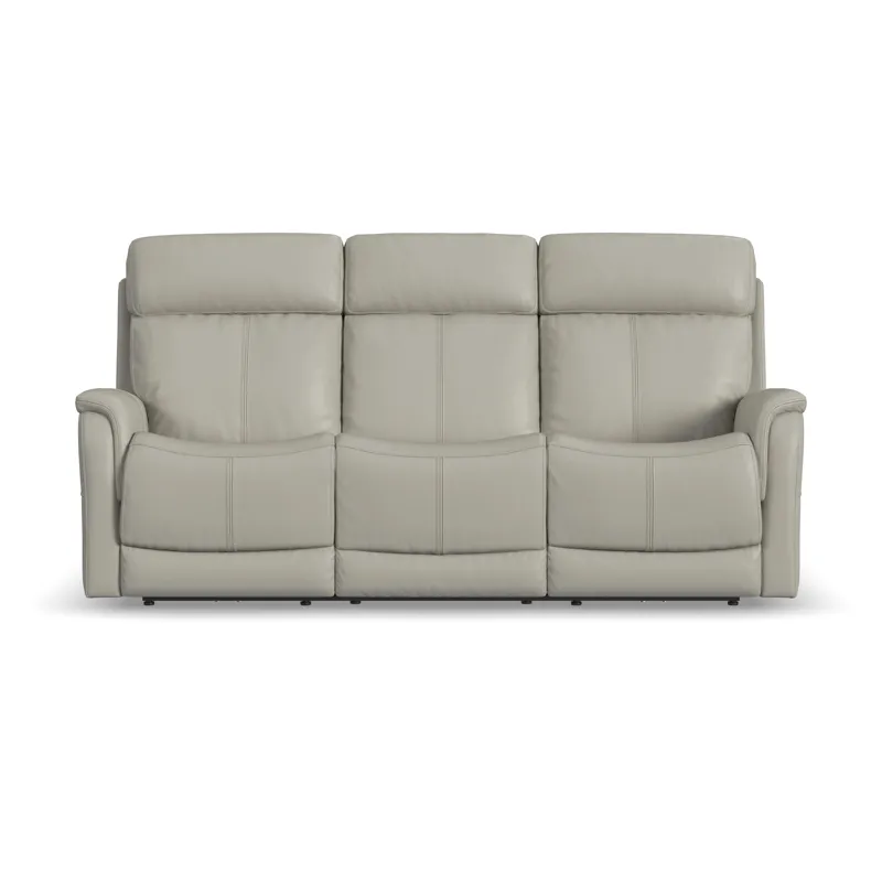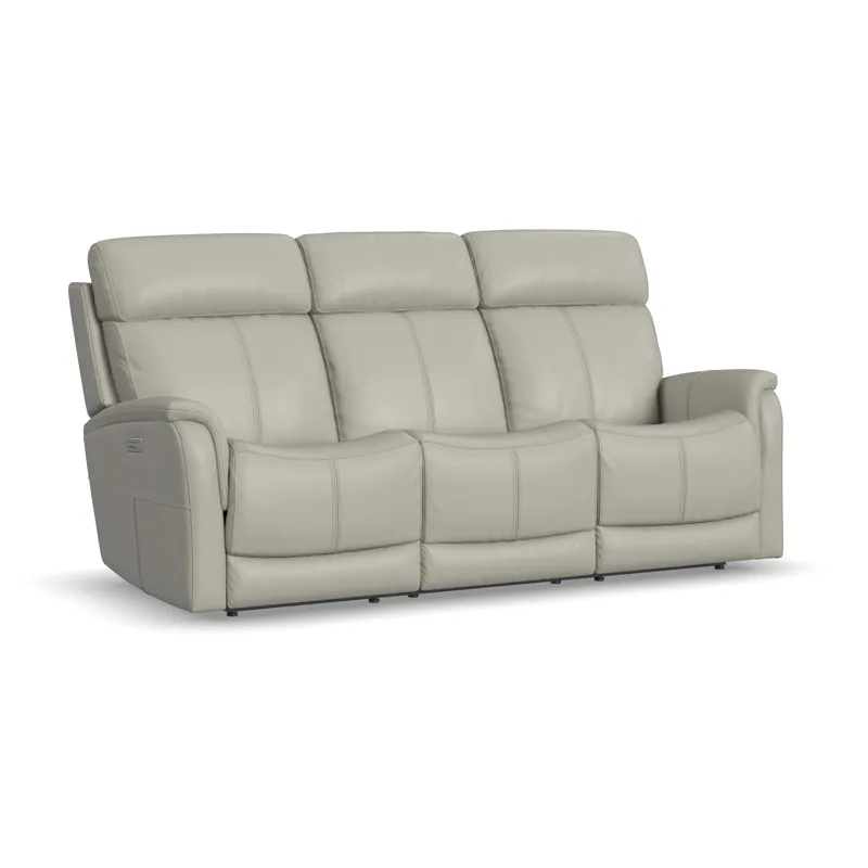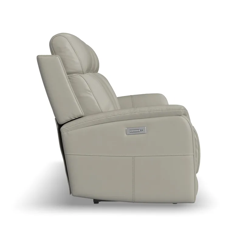 Make a move for your comfort and well-being with the MOV 360 View Sofa. After a long day, sink into the sofas' comfy cushions, which include padded arms that take pressure off your forearms. Enjoy premium features including leather upholstery, available in three color options, accented with welt trim and heavy thread top-stitching for a refined aesthetic. A seat with divided chaise and extended footrests that are designed to take pressure off your body and help you relax. Customizable Zero Gravity recline provides the best support and comfort in relaxation. And independently control the headrest, lumbar and recline with the easy-to-reach power control which includes a built-in USB-A and USB-C charging ports. Our patented Flexsteel DualFlex Spring System™ keeps the seats firm yet flexible and ensures the longevity of the sofa.