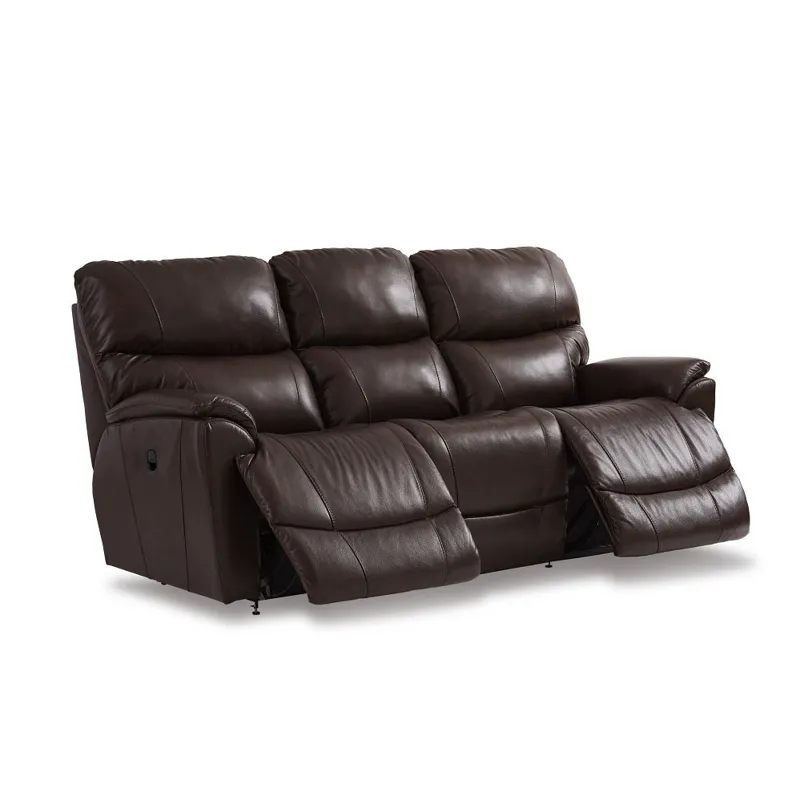 Turn casual evenings at home into cozy family nights with our Trouper reclining sofa. Sink into one of the three sculpted bucket seats as the split back cushion provides soft support of your head, neck and lumbar. Dual-sided reclining allows both the right and left arm seats to recline with a simple latch release. Adjust the back and chaise legrest for personalized reclining comfort, or lean back without raising your feet. Perfect for movie nights and more, Trouper has plenty of comfort to go around.
