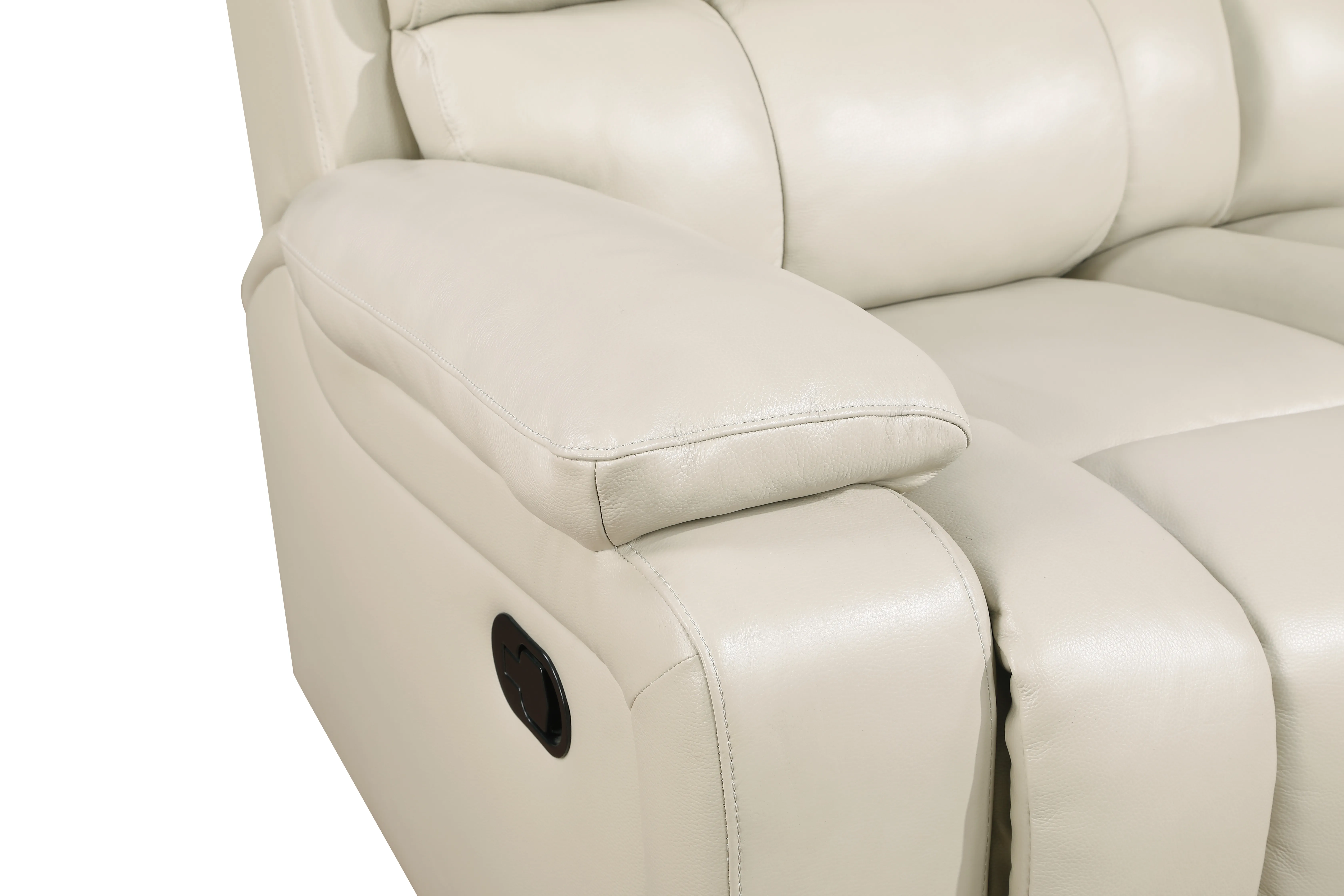 Introducing the Cicero Leather sofa, loveseat, and glider recliner set, the perfect addition to any living room. This luxurious set is upholstered in creamy leather match, adding a touch of sophistication and comfort to your home.The sofa and loveseat feature a traditional design, with plush cushions and sturdy wooden legs, providing the perfect combination of style and support. The glider recliner, on the other hand, adds a modern touch to the set, with its smooth gliding motion and reclining function.This set is available in both manual and powered versions, with headrest and footrest options. The powered version allows you to adjust the headrest and footrest with the touch of a button, providing ultimate relaxation and comfort.Whether you''re hosting guests or simply lounging at home, the Cicero Leather sofa, loveseat, and glider recliner set is the perfect choice. Its elegant design and comfortable make it a must-have for any living room.