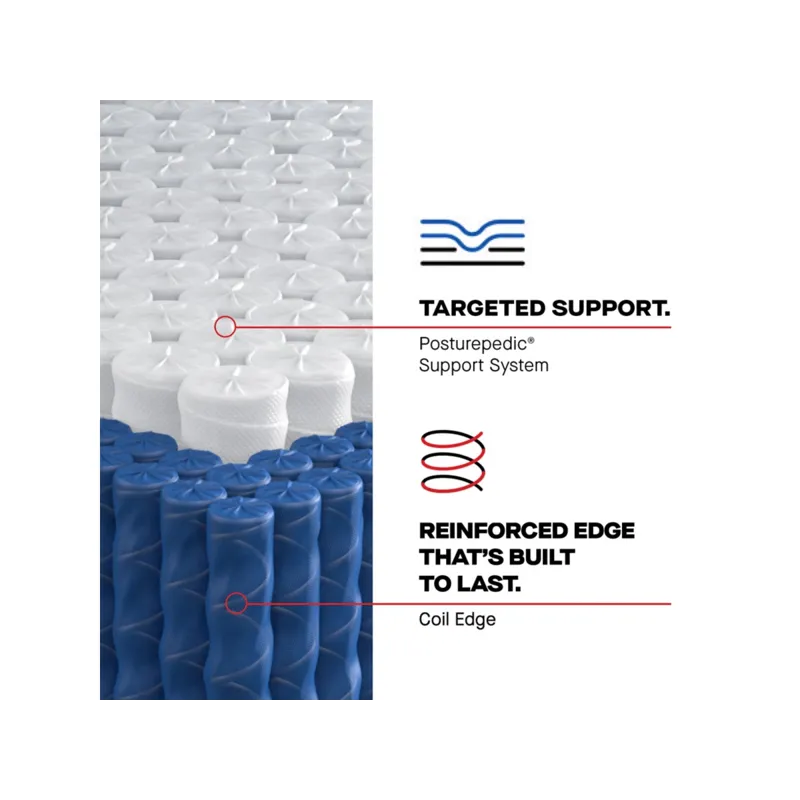 Posturepedic® Support System: The Posturepedic® Support System features our exclusive PrecisionFit™ Coils, arranged right where you need them to help maintain natural body alignment and reduce nagging Bed Aches™. This support system is surrounded by a coil edge for a solid seating surface that’s built to last.