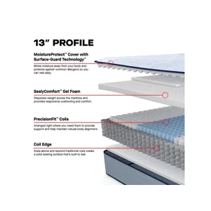 SealyComfort™ & SealySupport™ Gel Foams: These foam layers provides cushioning, comfort and contributes to the foundational support of the mattress.