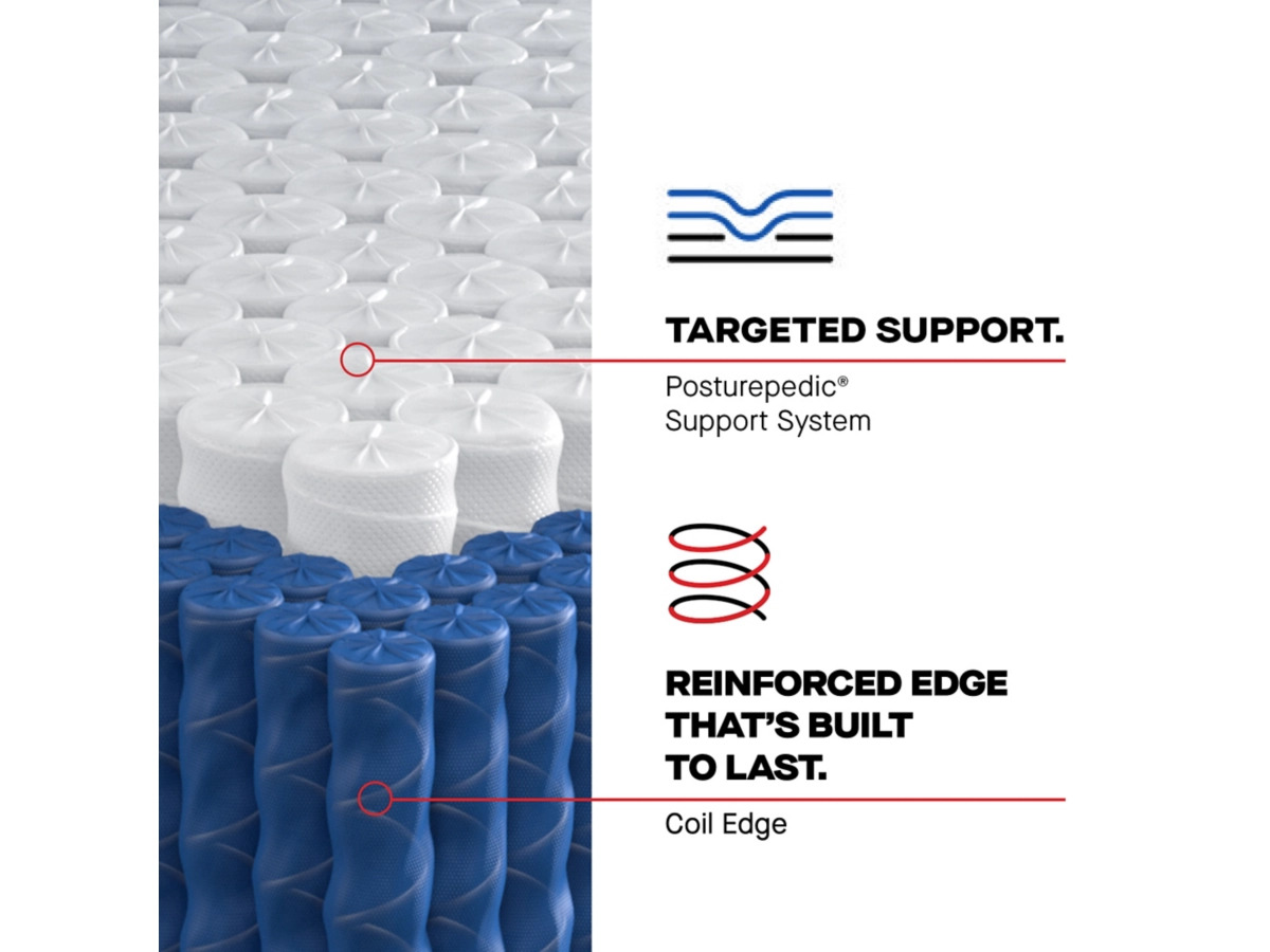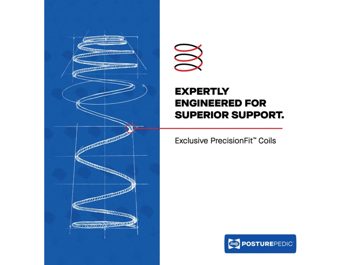 Posturepedic® Support System: The Posturepedic® Support System features our exclusive PrecisionFit™ Coils, arranged right where you need them to help maintain natural body alignment and reduce nagging Bed Aches™. This support system is surrounded by a coil edge for a solid seating surface that’s built to last.