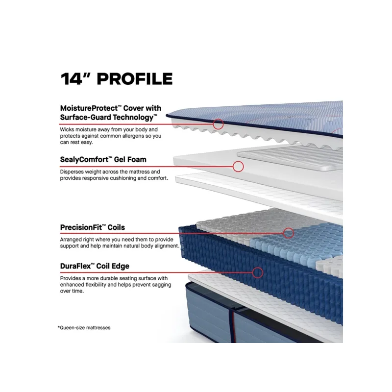 SealyComfort™ & SealySupport™ Gel Foams: These foam layers provides cushioning, comfort and contributes to the foundational support of the mattress.
