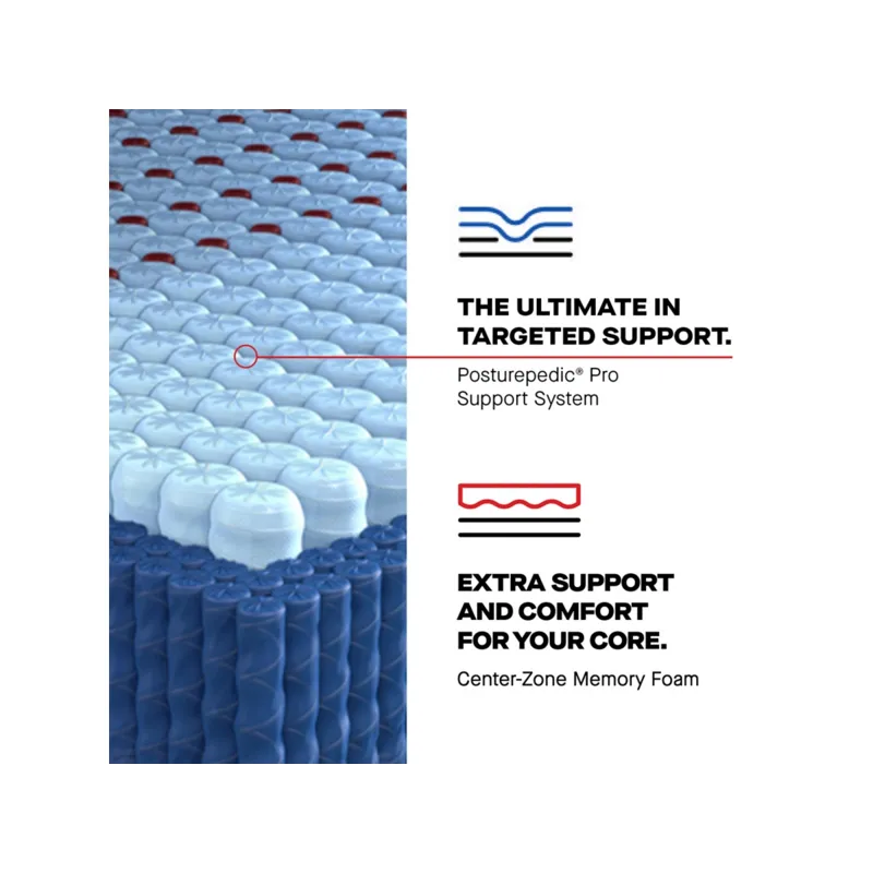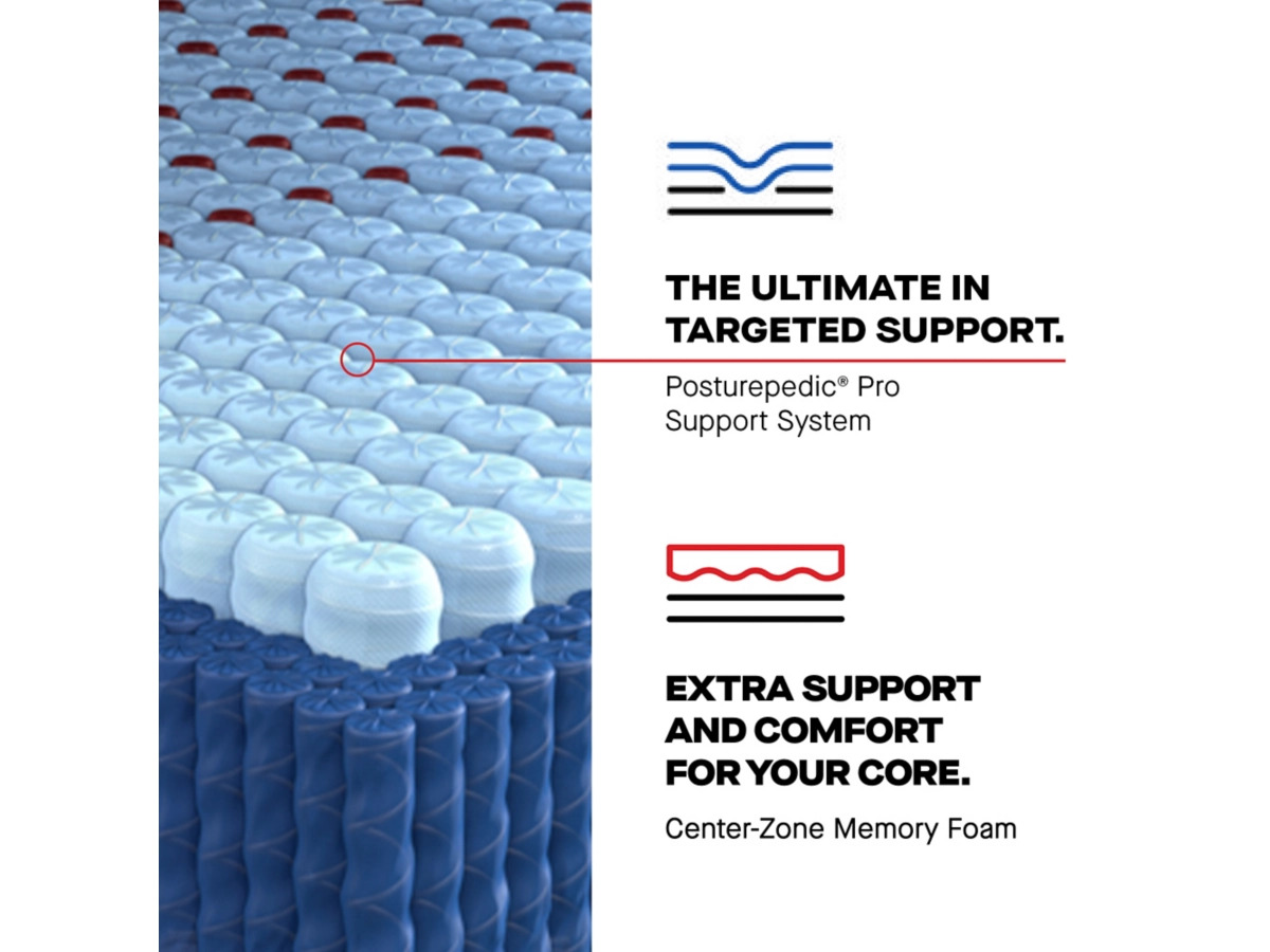 Posturepedic® Pro Support System: The Posturepedic® Pro Support System offers the ultimate in targeted support to reduce nagging Bed Aches™ with exclusive PrecisionFit™ Coils, expertly arranged from head to foot and enhanced with MaxSupport™ Technology, and a solid DuraFlex™ Coil Edge.