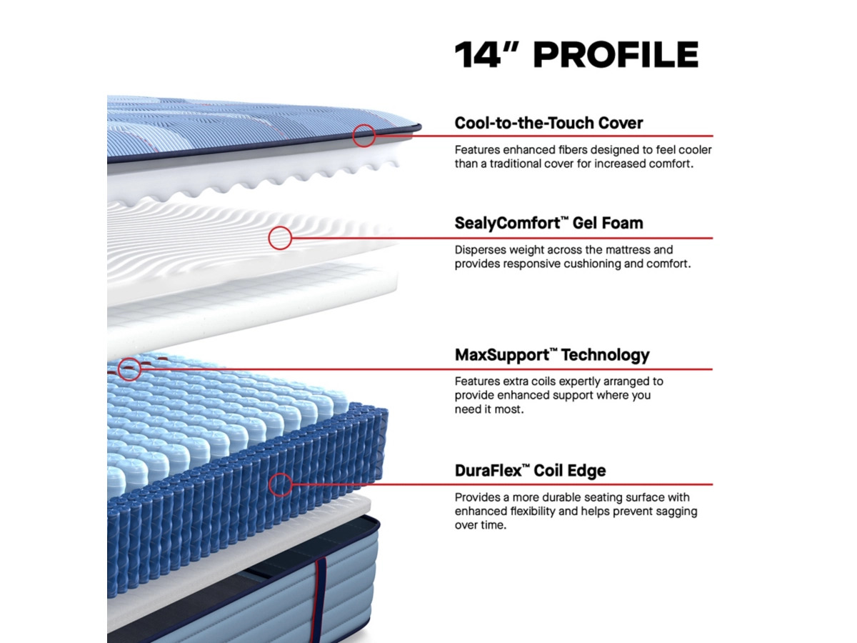 SealyComfort™ & SealySupport™ Gel Foams: These foam layers provides cushioning, comfort and contributes to the foundational support of the mattress.